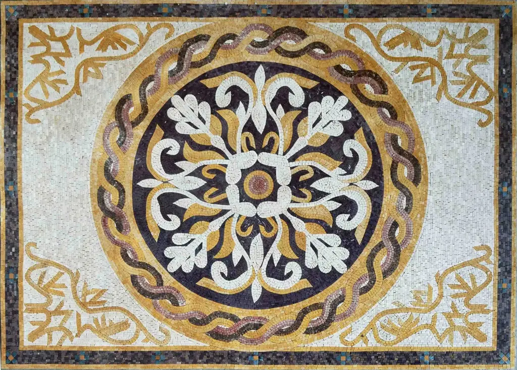 Introducing the Roman Stone Mosaic - Julian, a stunning piece that transforms any space into a gallery of artistry and elegance. Crafted with meticulous attention to detail, this hand-cut mosaic features a harmonious floral cross center in a vibrant yellow and soft ivory, beautifully set against a picturesque rose background. Surrounding this elegant design is a Roman guilloche pattern enriched with striking black accents, adding depth and sophistication to the overall aesthetic.The Roman Stone Mosaic - Julian is not just a decorative piece; it is an embodiment of artistry that captivates the eye and sparks conversation. Ideal for enhancing the ambiance of your living room, hallway, or office, this mosaic art brings a touch of traditional charm blended seamlessly with modern design elements. The intricate details and thoughtful craftsmanship make it a perfect statement piece for those who appreciate unique artistic expressions.For those looking to elevate the presentation of this exquisite mosaic, consider adding a stylish wood frame. Framing the Roman Stone Mosaic - Julian not only enhances its visual appeal but also transforms it into a one-of-a-kind gift that will be cherished by any mosaic art collector or home decor enthusiast. Each mosaic is a testament to skilled artistry, ensuring that your choice stands out among ordinary wall art.Bring home the Roman Stone Mosaic - Julian and indulge in the beauty of handcrafted art that enriches your living space and reflects your personal style. Whether for personal enjoyment or as a thoughtful gift, this mosaic art piece is sure to leave a lasting impression. Embrace the elegance of mosaic art with the unmatched charm of the Roman Stone Mosaic - Julian, and let it inspire your home decor journey.