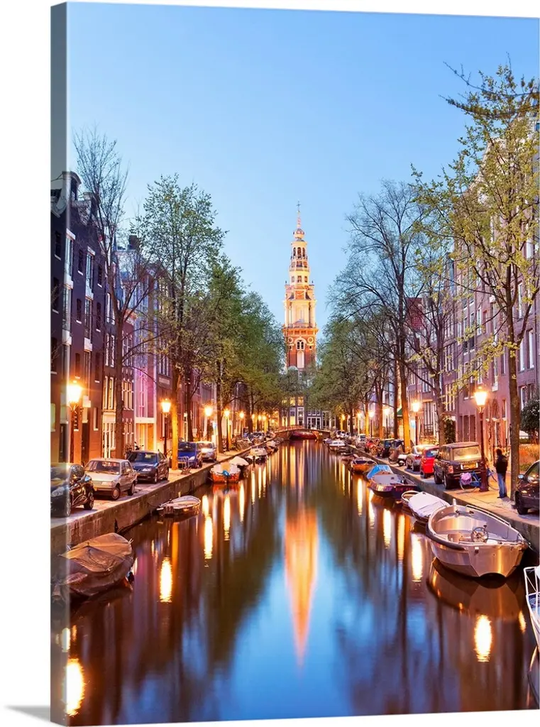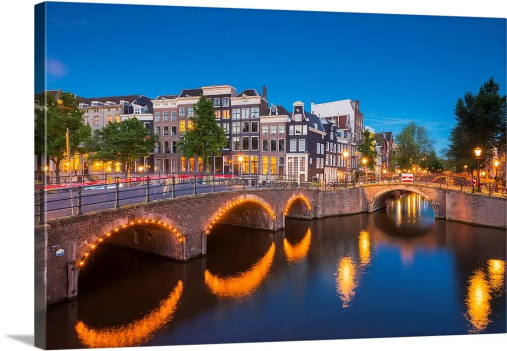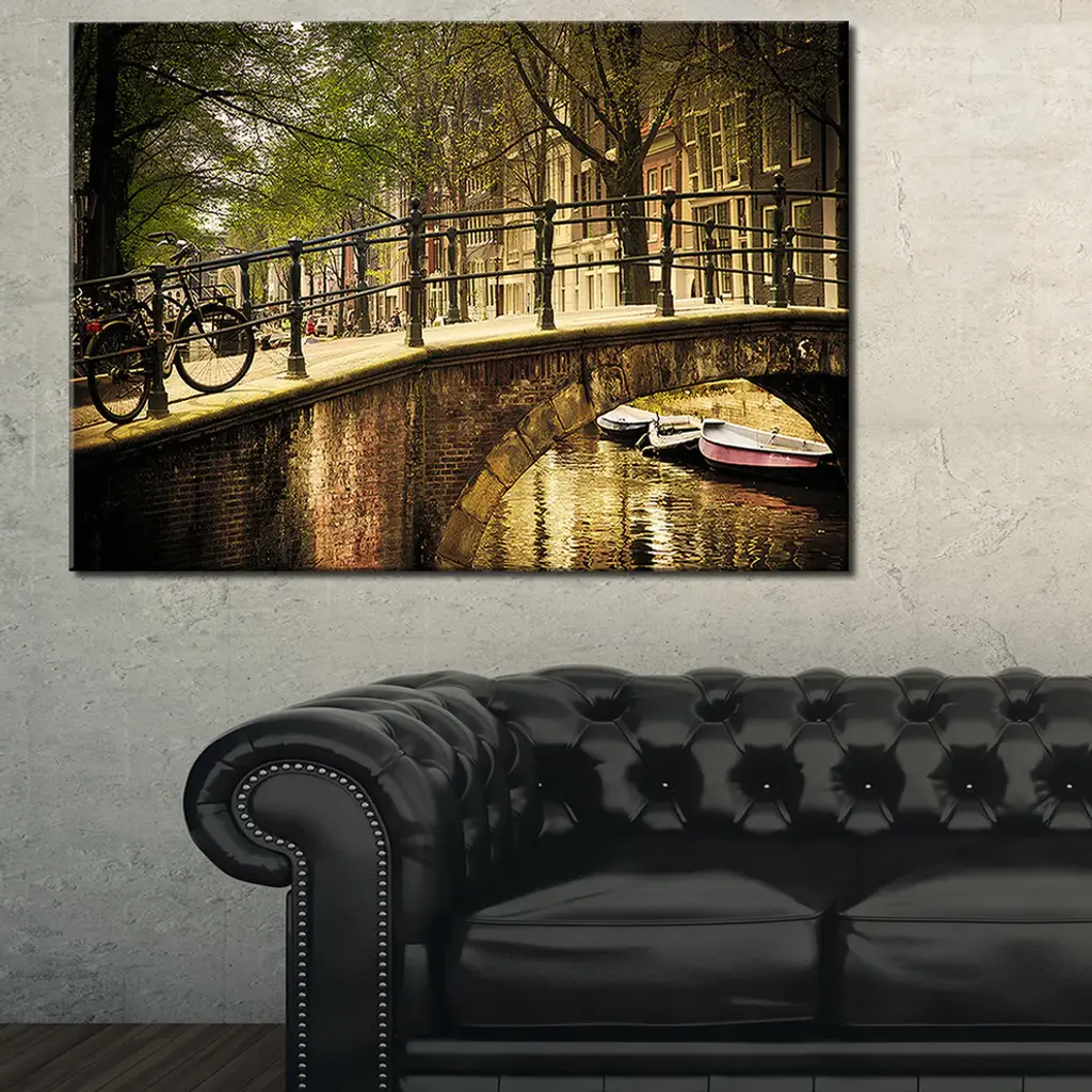 "Romantic Bridge Over Canal" Landscape Canvas Photo Print, 40"x30"