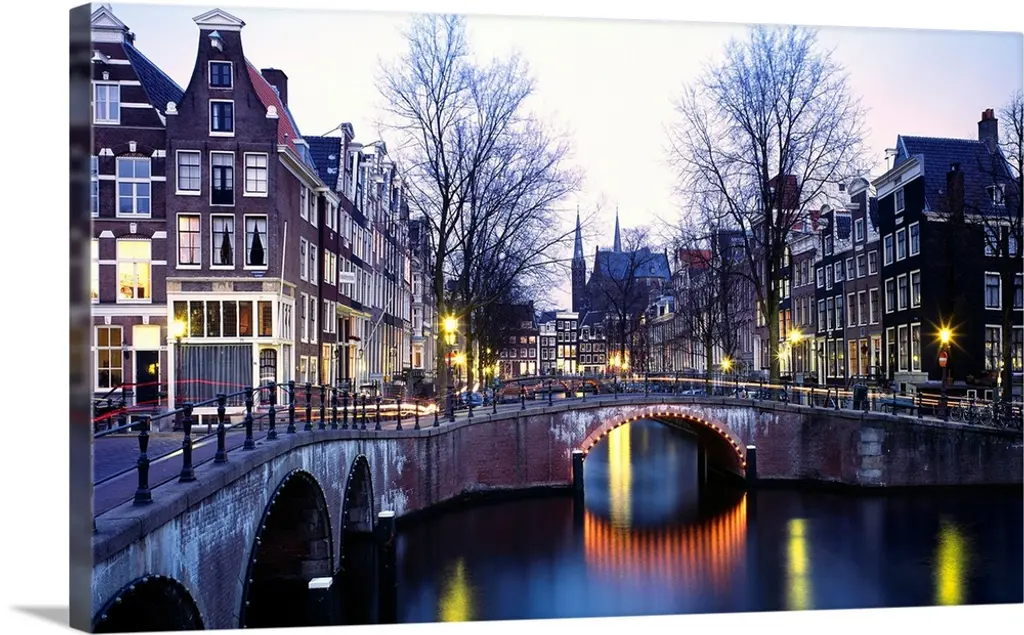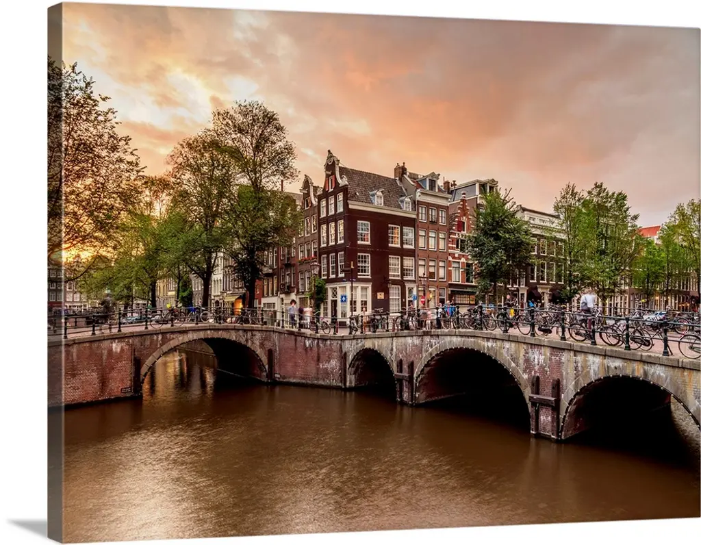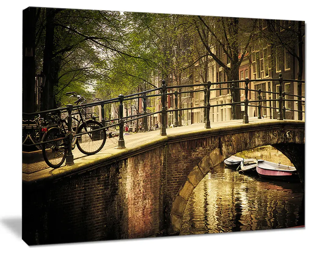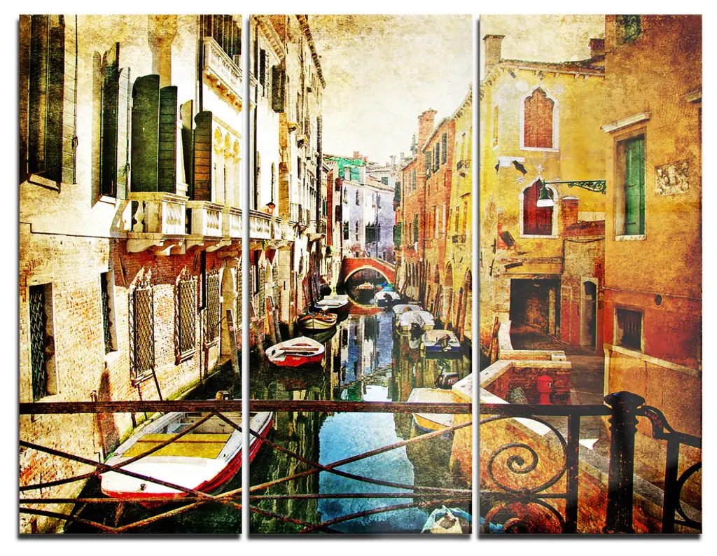 "Romantic Bridge Over Canal" Photo Metal Wall Art, 3 Panels, 36"x28"