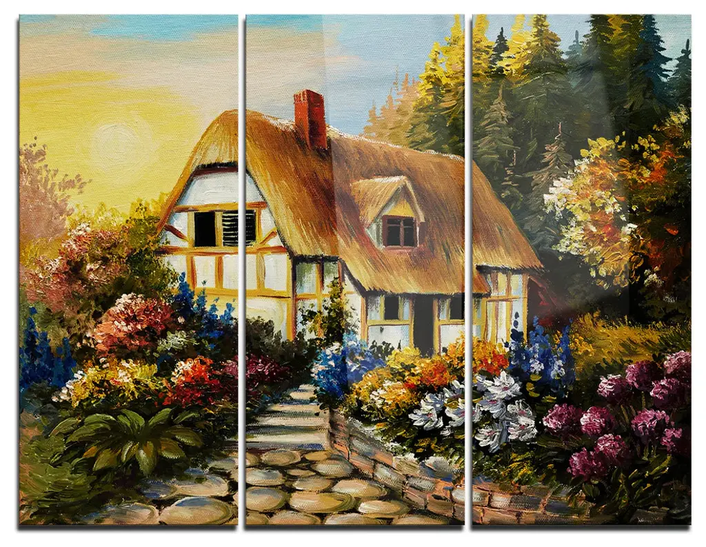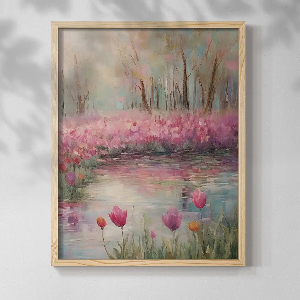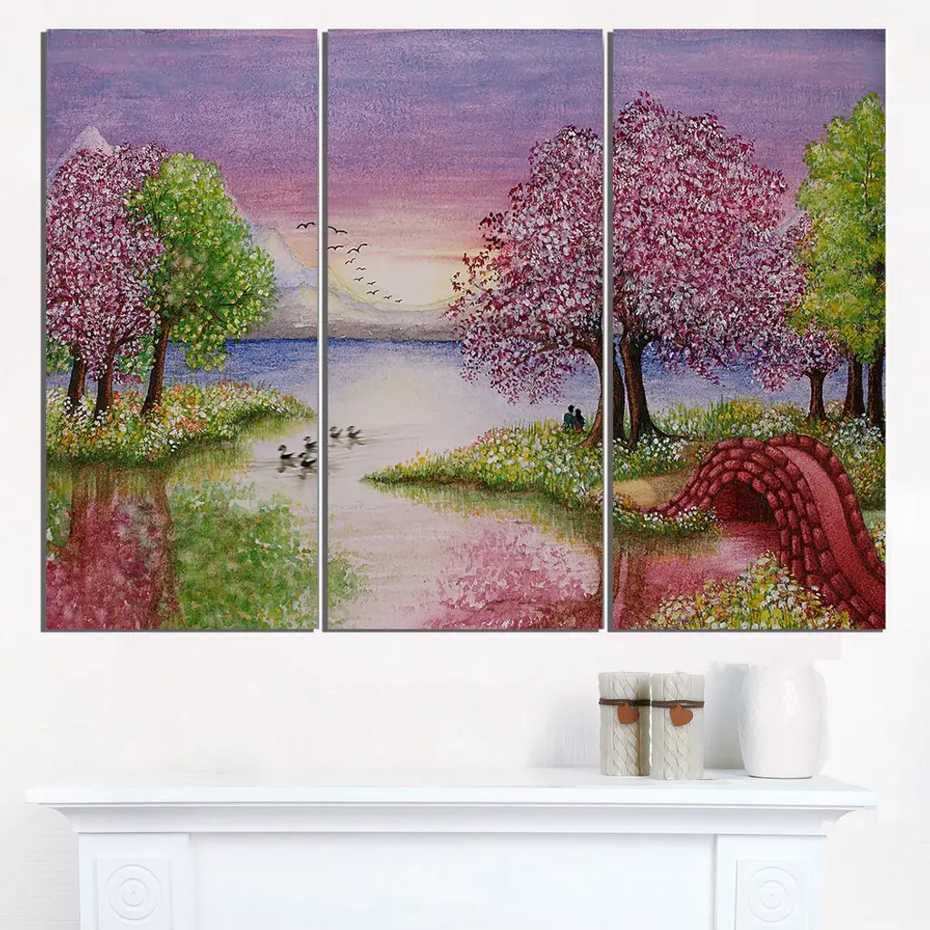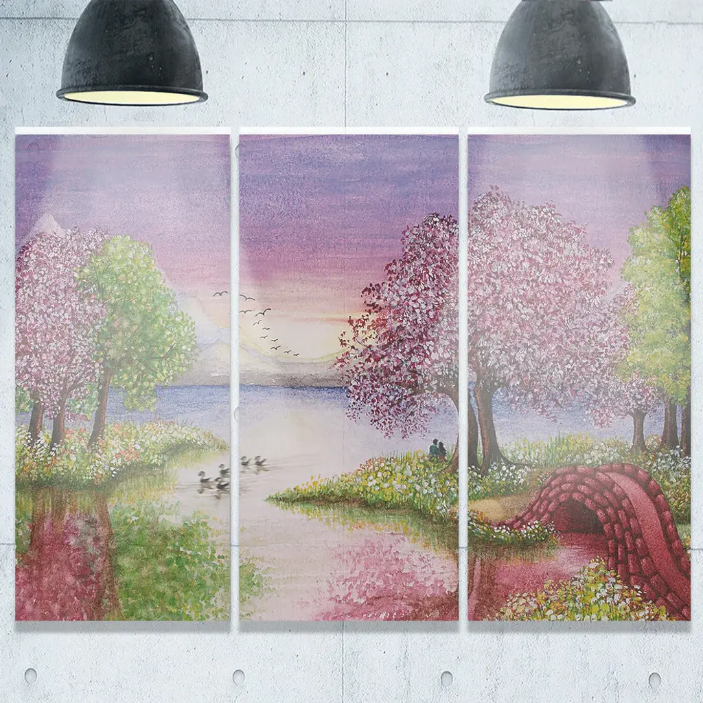"Romantic Lake In Pink And Green" Metal Landscape, 3 Panels, 36"x28"