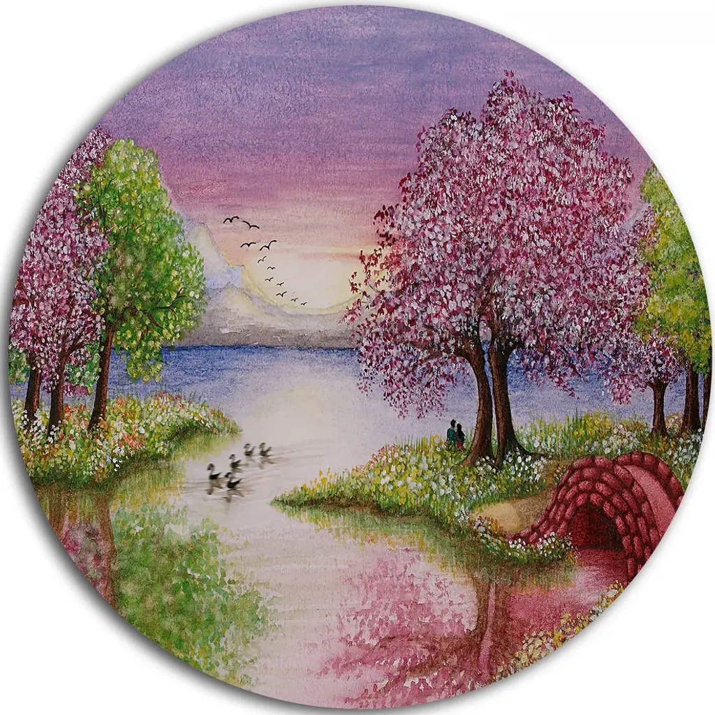 Bring contemporary abstraction to your home with this large 36W x 28H Metal Wall Art. This Romantic Lake in Pink and Green Metal Artwork makes it the focal point of any room or office. - White gloss coating ensures colors are extra vibrant with light reflection.- Aluminum grade sheet metal with 1-inch mounting frame on the back giving the illusion that the artwork is floating on the wall.- Mounting brackets are included along with instructions.- High quality digital images are created directly into a glossy aluminum panel producing a stunning and captivating print into the glossy finish of the metal.- Water, fire and scratch resistant HD aluminum panels.- Looks better than any photo paper and guaranteed to last at least 20 years- Easy to clean with a microfiber cloth. Colors are far superior to regular canvas art. - Easy to hang