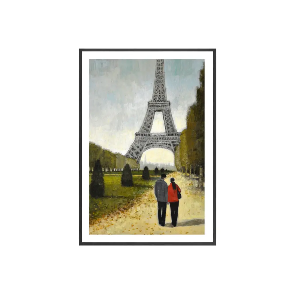 Imagine walking with your love in the heart of Paris in this vertical cityscape art featuring the Eiffel Tower. The decorative artwork, 'Romatic Stroll I' will complement your space with its transitional and contemporary aesthetic. This piece is handcrafted in Chattanooga, Tennessee by Ready2HangArt using a locally sourced artist print, with a frame and a rear hanger for simple installation. Offering a wide range of transitional subjects and unique textures, Norman Wyatt's collections will add interest to any modern or contemporary decor.