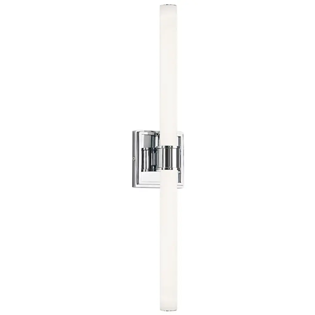 Sleek, sophisticated and modern. The Rona LED Vanity Light by Kuzco Lighting is minimalistic and refined. A cylindrical White Opal Glass rod establishes a linear form while providing a warm illumination along its length. Architecturally inspired trim detailing elevates the metallic elements of this fixture, encircling the glass rod and anchoring everything to the wall with a square backplate. Able to be installed vertically or horizontally, form meets function and compliments bathroom spaces both big and small.