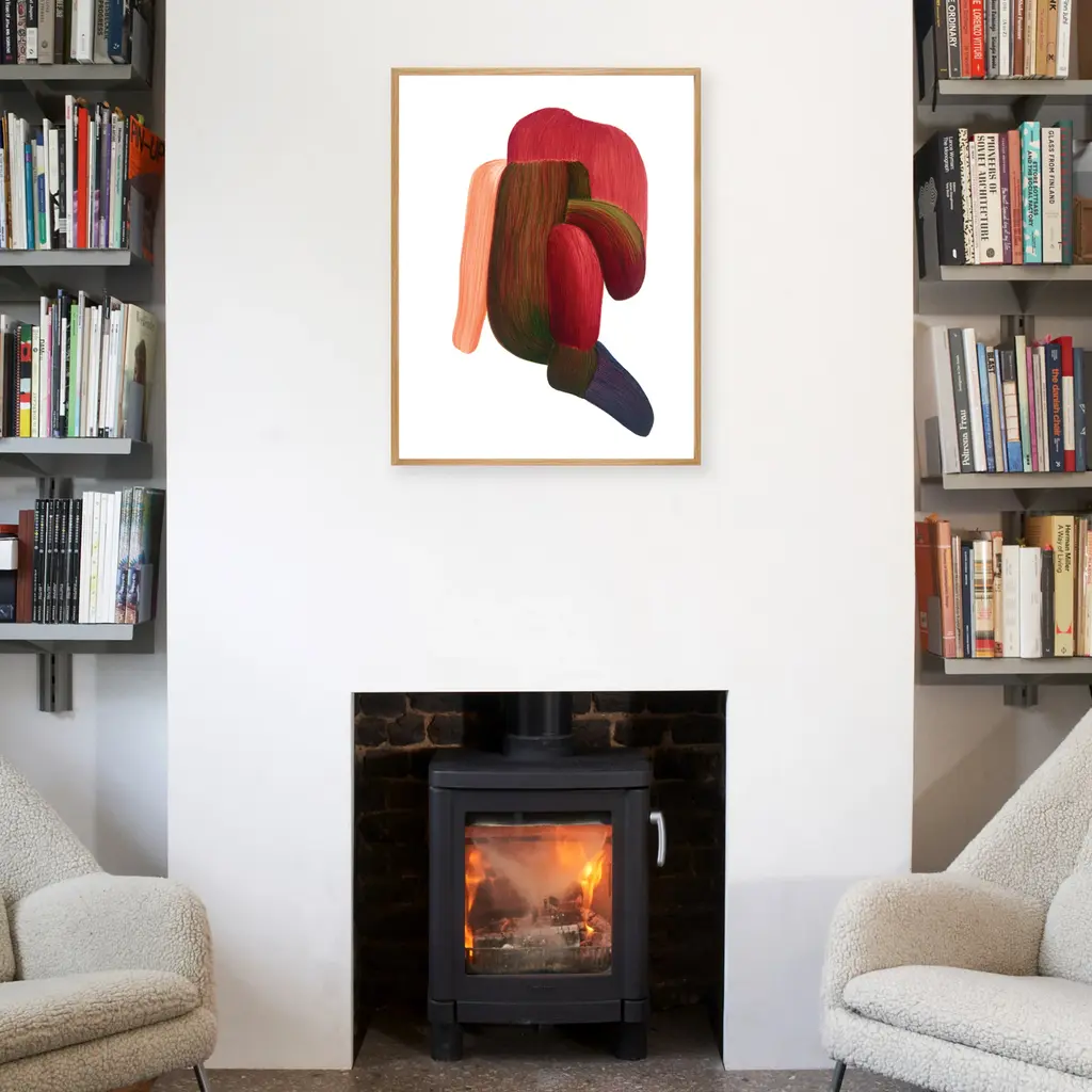 MoMA Exclusive: This high quality framed poster featuring Drawing 27 by Ronan Bouroullec is digitally printed on Fedrigoni Splendorlux, 250gsm embossed paper. This technique allows the colored ink to appear matte, closely resembling Bouroullec's drawing technique using felt-tip pens on glossy white card. The print is framed using a wax oak molding in a natural finish and fitted with Plexiglass. The framed print measures 24h x 31w x 1”d. Returns are not accepted. Ronan Bouroullec has work in MoMA's collection. Bright and vibrant in color, Drawings 27 belongs to a new series from Ronan Bouroullec exclusively for the Wrong Shop. A continuation of his iconic Drawings series that feature colorful abstract compositions. Drawing is a vital aspect of Ronan's work. Created with a focus on gesture: lines and densely-layered strokes unfold.