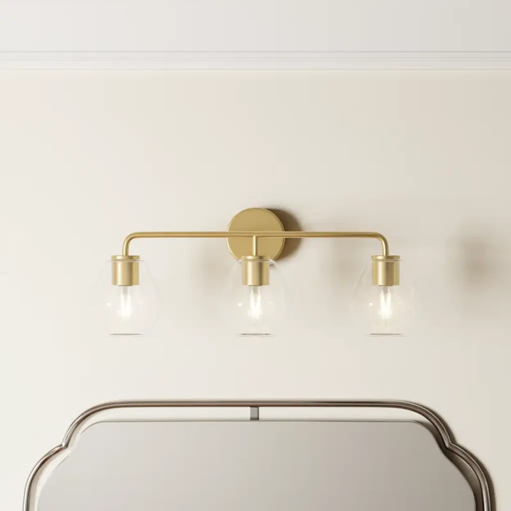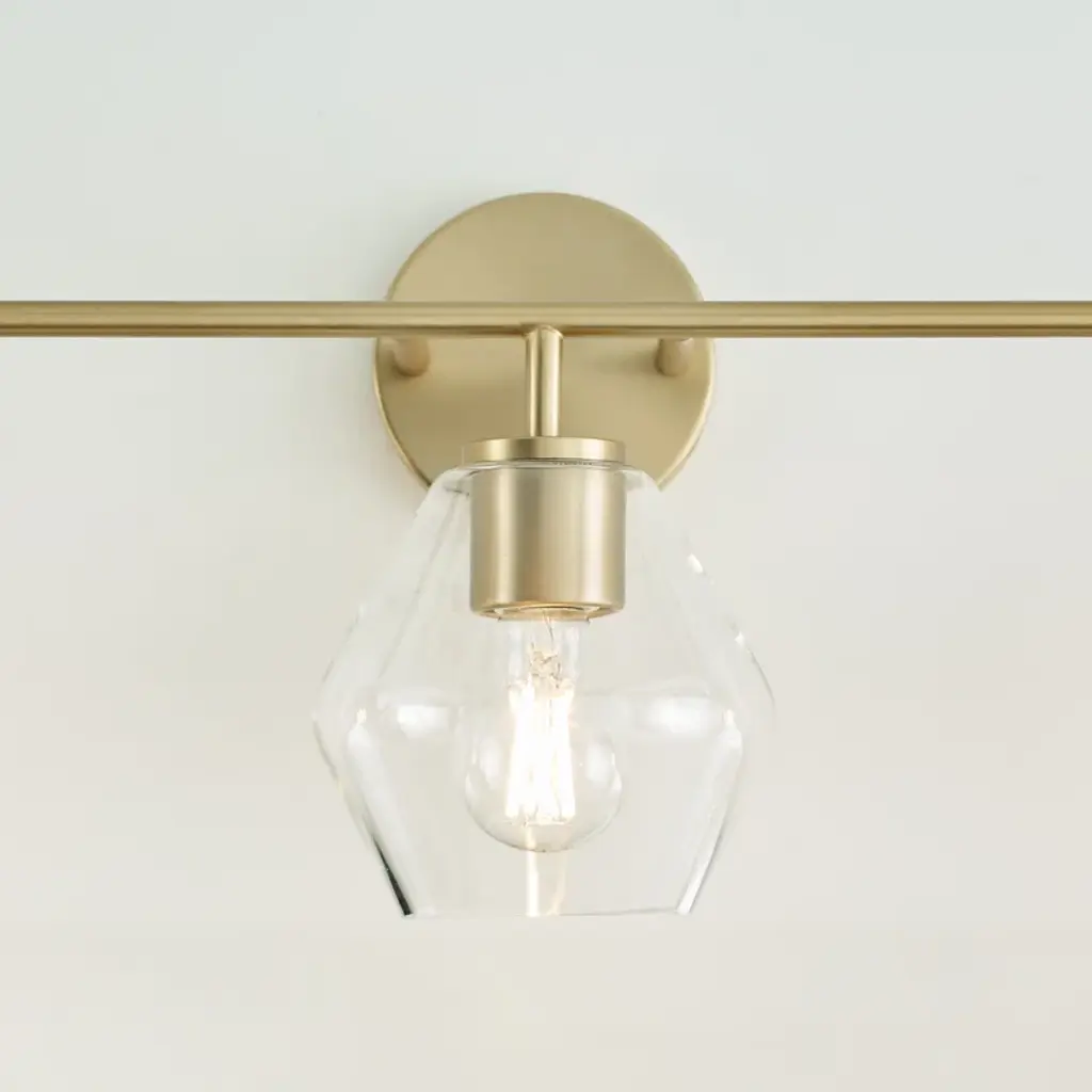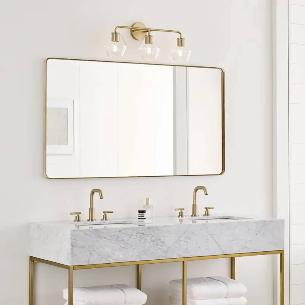 A smooth blend of rustic + industrial, this vanity light’s three glass shades showcase striking hexagonal silhouettes. It’s built from steel, and suitable for damp locations, like a bathroom. Install it with a dimmer switch to easily set the vibe in your space.