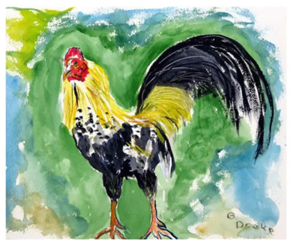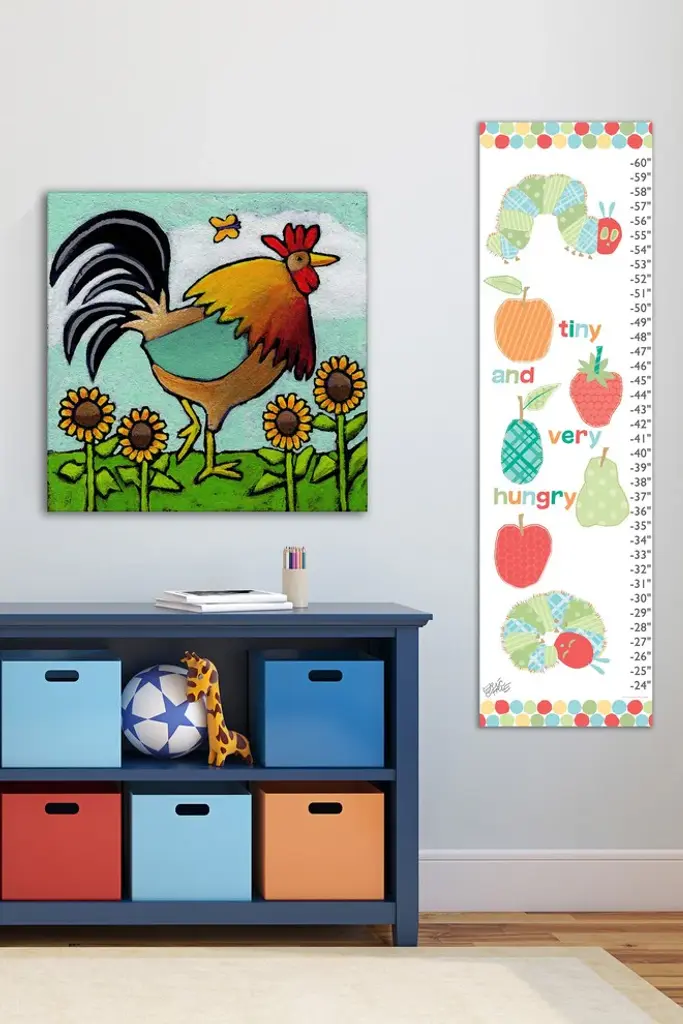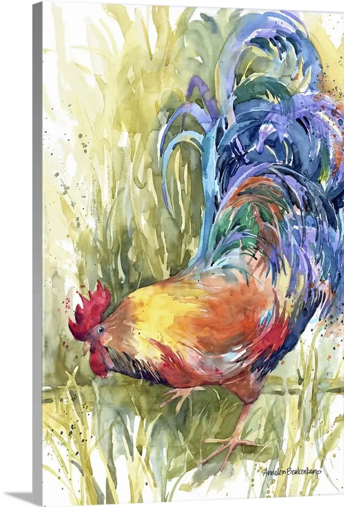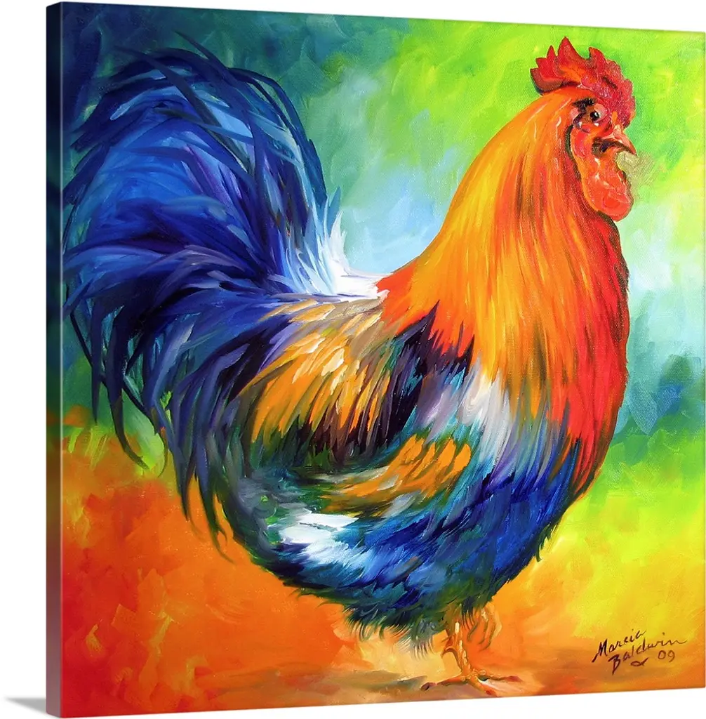 "Rooster With Sunflowers" By Janet Nelson Print Wrapped Canvas, 24x24