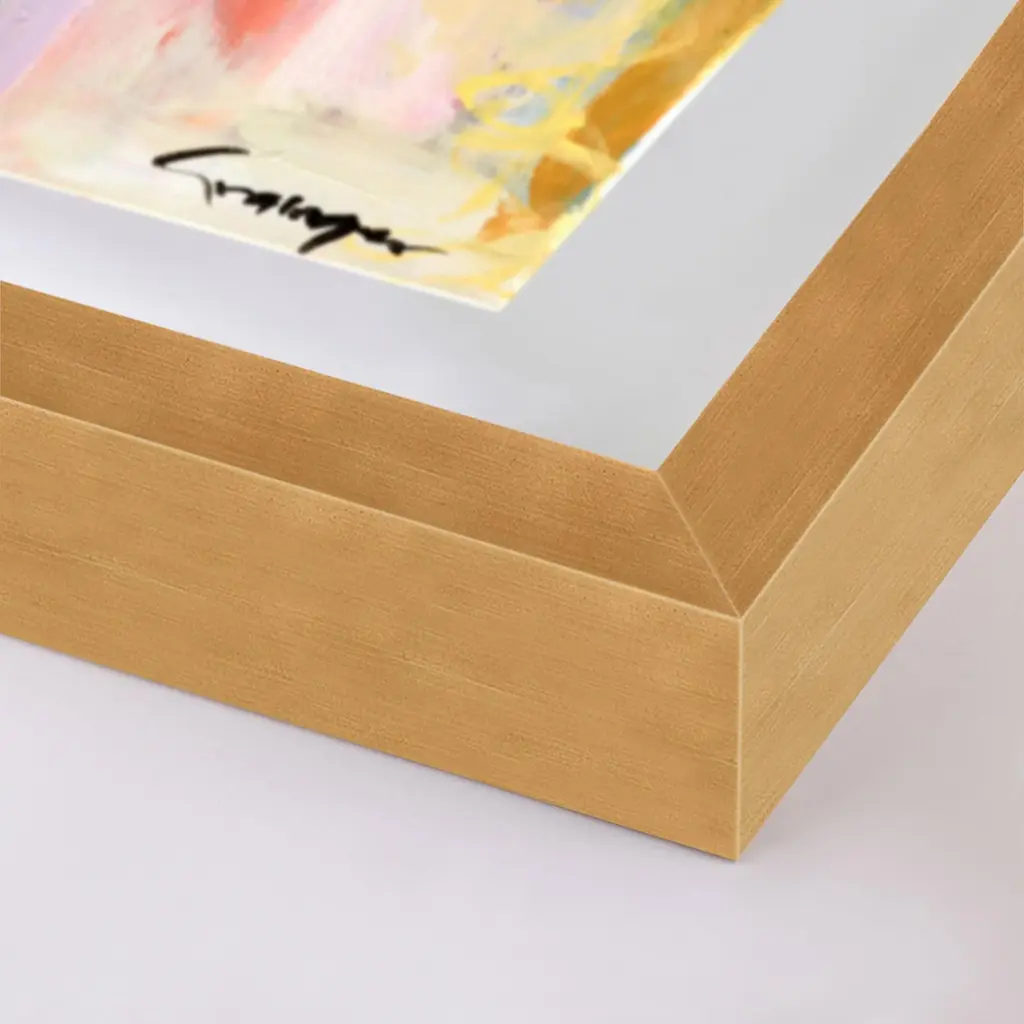 DESCRIPTION: Rosalita by Lesley Grainger in Gold Frame, Small Art Print SPECIFICATIONS: Type: Framed Paper. Framed Size (in): 20.5x24. Orientation: Vertical. Flush/Float/Matted: matted. Frame Color: Gold. Hanging Hardware: Picture Perfect. FRAMING: Each art work arrives framed and ready to hang. We use handmade frames with a plexiglass glazing front, because it offers less glare than standard glass. At this time, we only offer framed prints. ARTIST BIO: Lesley Grainger was born in Yorkshire, England, where she grew up in a small Northern fishing town and currently resides in Orange County, California. She received a B.A. in Illustration and Design from the University of Lincoln. Early in her career, she worked as graphic designer and later began to produce children’s books and licensed artwork. For the last several years her main focus and passion has been abstract painting. She works intuitively and thoughtfully while discovering new and interesting colors and compositions. Painting is a reflection of experience and what Lesley has found is that each painting is translated to the next, like an ongoing story. Discovery is key in Lesley's expression, as she works with the canvas, adding and removing elements. This pushes her to new levels and brings a sense of how art can change the way we think, feel, and connect with the world.