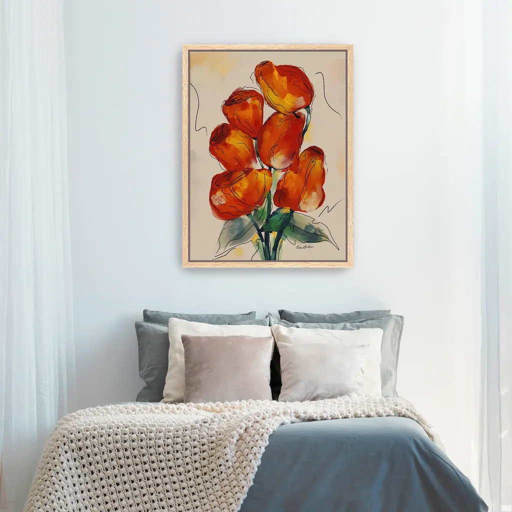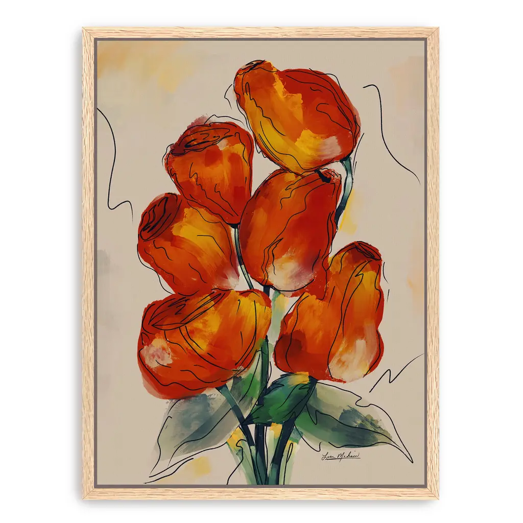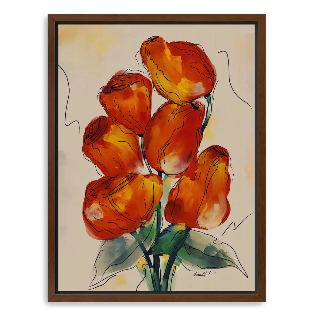 Bring nature indoors with this elegant floral canvas print, featuring soft petals and graceful stems in a soothing, painterly style. Its timeless beauty and gentle color palette make it a perfect accent for bedrooms, living rooms, or creative spaces. Our Gallery Wrap Canvas Prints are proudly assembled with high quality materials in California, USA. Each piece is printed on a thick, archival grade canvas using Giclee technology. It is then hand-stretched by our experienced artisans over solid wood bars, which will not warp over time. The final product is a piece personally crafted for you to confidently display on your wall. Care and Assembly: Ensure that the location of your piece has little to no exposure to heat, sunlight, and moisture. Wipe clean, only if needed. Each piece includes hanging hardware to hang on your wall vertically.