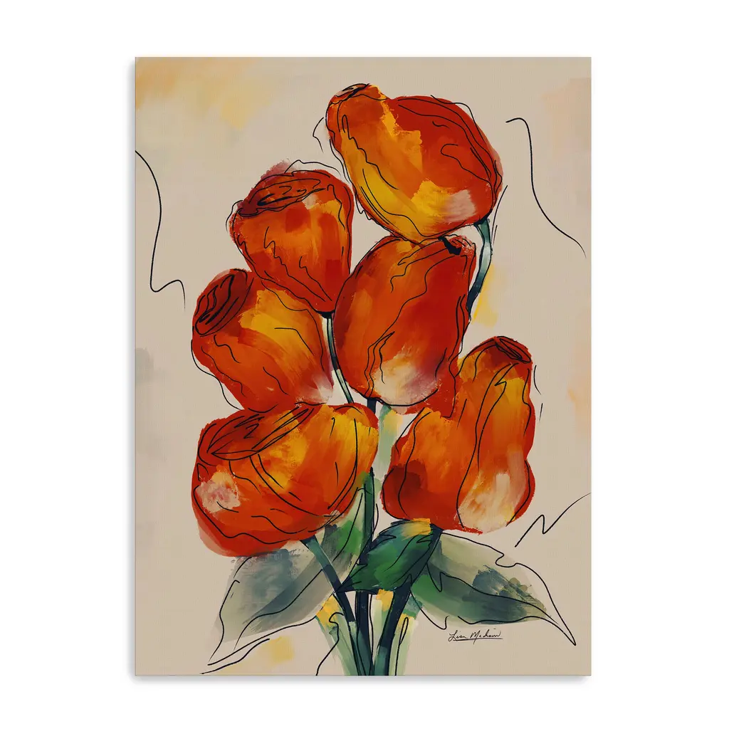 Bring nature indoors with this elegant floral canvas print, featuring soft petals and graceful stems in a soothing, painterly style. Its timeless beauty and gentle color palette make it a perfect accent for bedrooms, living rooms, or creative spaces. Our Gallery Wrap Canvas Prints are proudly assembled with high quality materials in California, USA. Each piece is printed on a thick, archival grade canvas using Giclee technology. It is then hand-stretched by our experienced artisans over solid wood bars, which will not warp over time. The final product is a piece personally crafted for you to confidently display on your wall. Care and Assembly: Ensure that the location of your piece has little to no exposure to heat, sunlight, and moisture. Wipe clean, only if needed. Each piece includes hanging hardware to hang on your wall vertically.