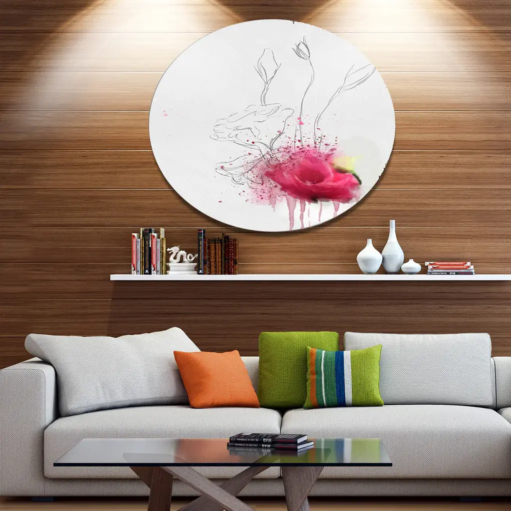 Rose Flowers Sketch With Color Splashes, Floral Disc Metal Artwork, 36"