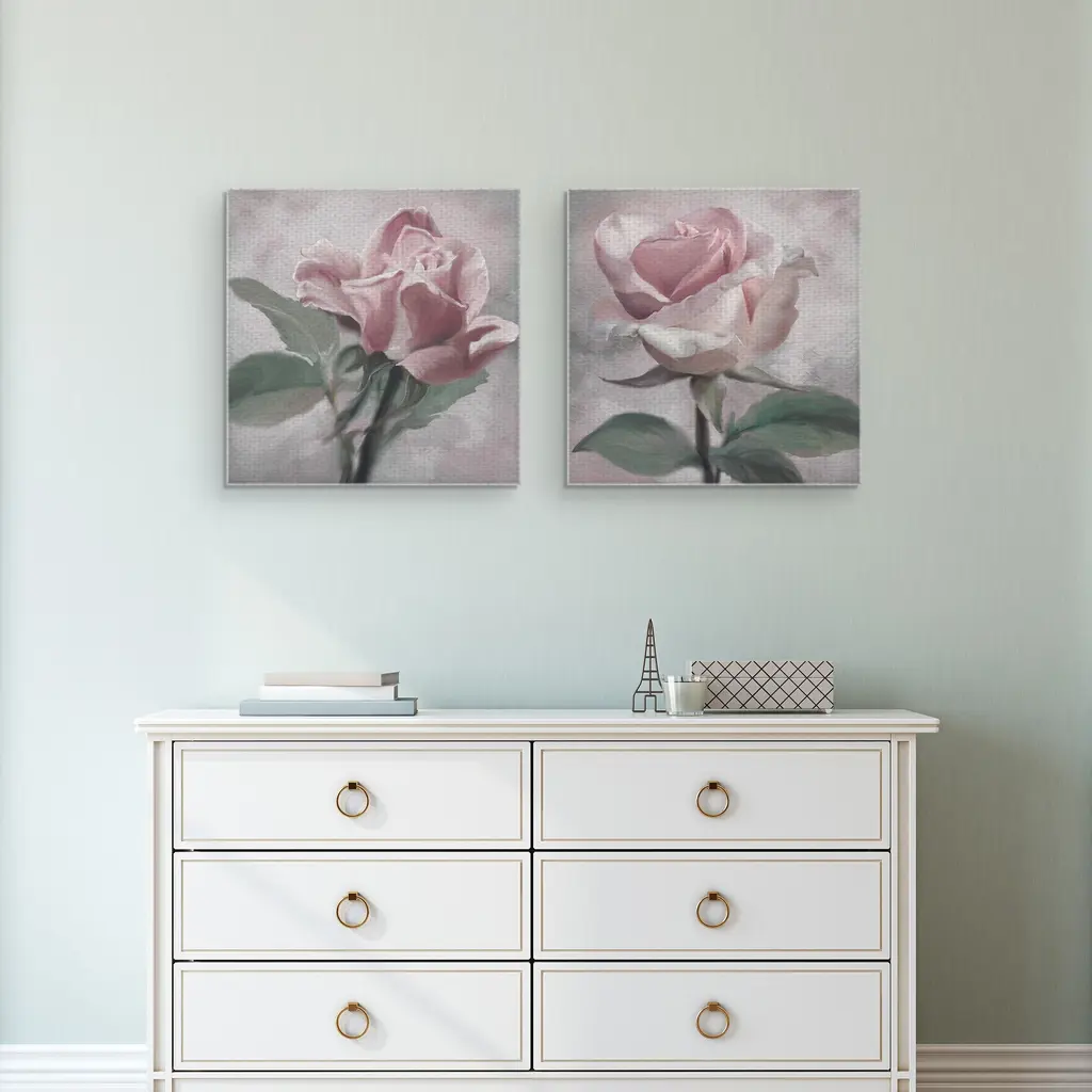 Rose Glow I, Ii By Studio Arts Canvas Art Prints - 16x16x2