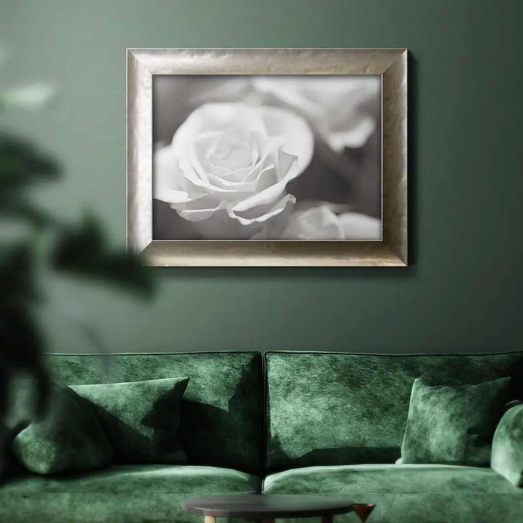Rose Studies IV Premium Framed Canvas- Ready to Hang A Premium Framed Canvas created to last. Framed in distressed wood and available in an array of sizes and colors Featuring a beveled a solid wood stretcher bar, each piece comes ready to hand 3 SIZES AVAILABLE 16''X20'' - Overall Size 18'X27'' - Overall Size 24''x36'' - Overall Size Each piece is made to order. Each piece comes with hanging hardware. Made in the USA Ready to Hang Giclee Paper Print Acrylic Glass Beveled Matt Board