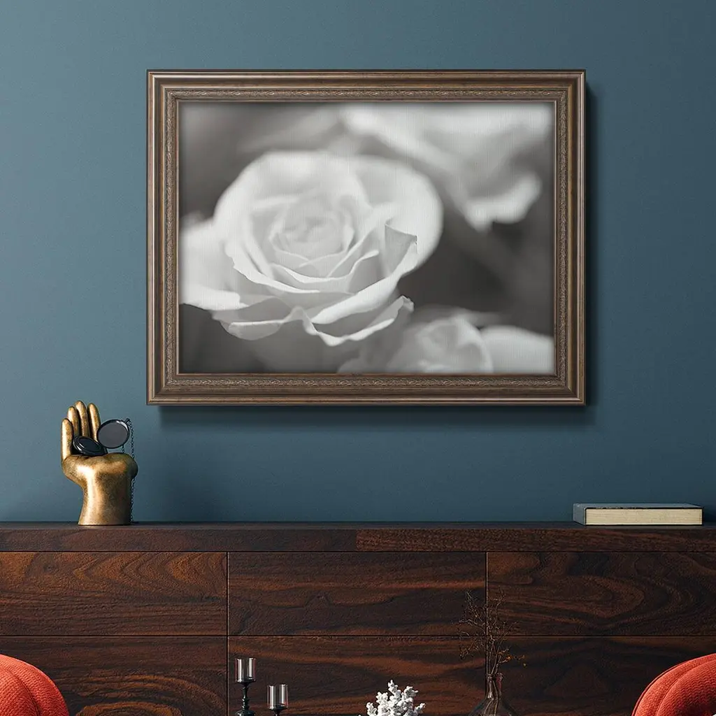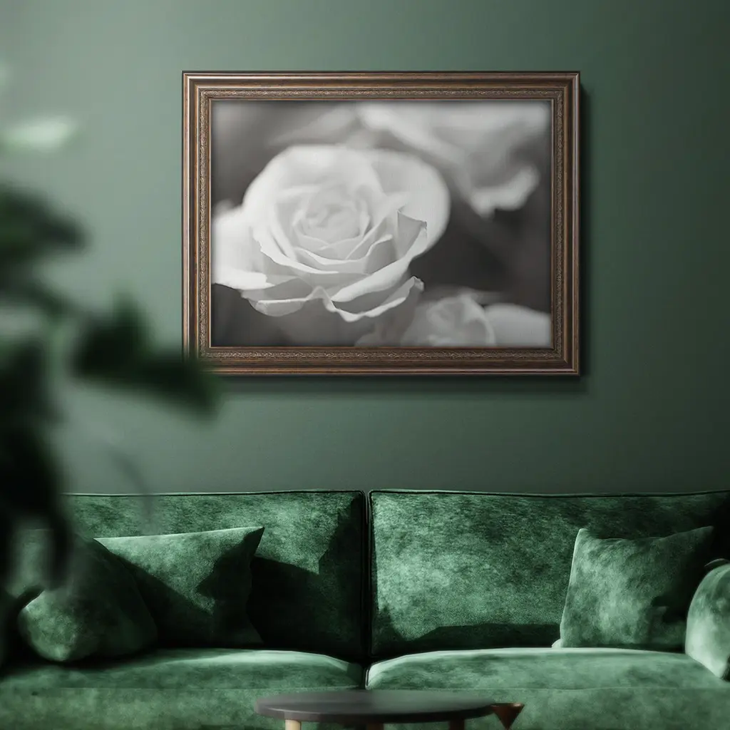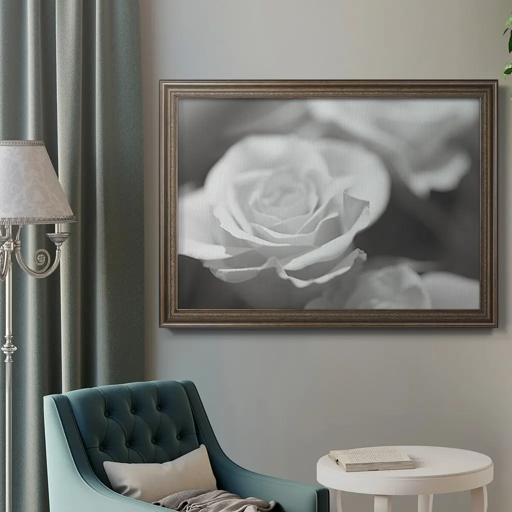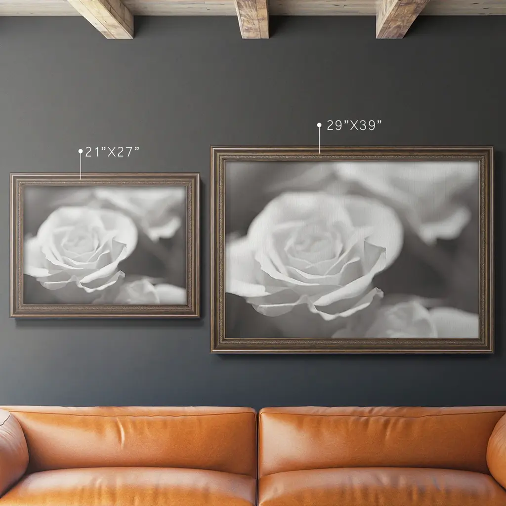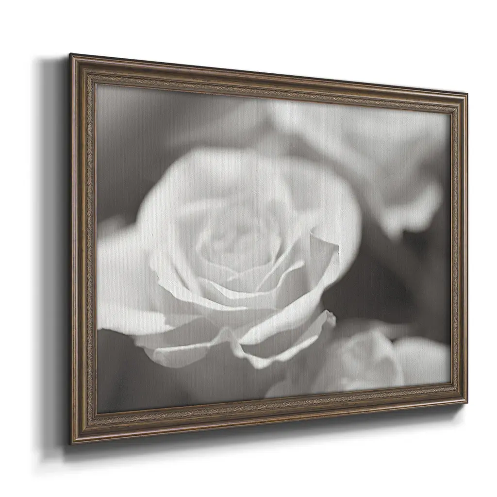 Rose Studies IV Premium Framed Canvas- Ready to Hang A Premium Framed Canvas created to last. Framed in distressed wood and available in an array of sizes and colors Featuring a beveled a solid wood stretcher bar, each piece comes ready to hand 3 SIZES AVAILABLE 16''X20'' - Overall Size 18'X27'' - Overall Size 24''x36'' - Overall Size Each piece is made to order. Each piece comes with hanging hardware. Made in the USA Ready to Hang Giclee Paper Print Acrylic Glass Beveled Matt Board
