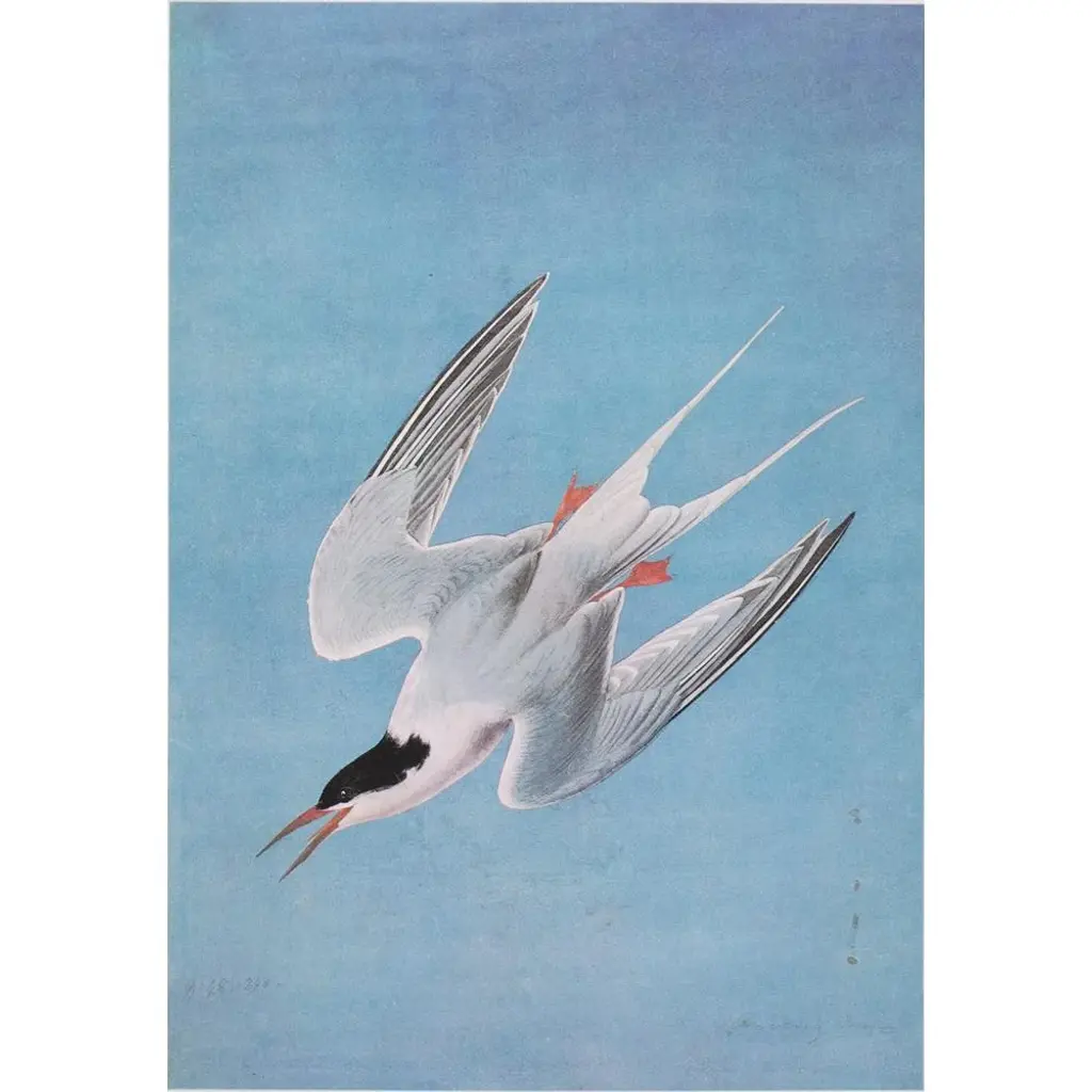 A stunning vintage Cottage or Nautical Style reproduction of the original lithographic print of Roseate Tern After John James Audubon. Comes from The Birds of America book by Audubon, published in the U.S. in 1966. Very detailed. Excellent condition - minor edge wear, never framed.