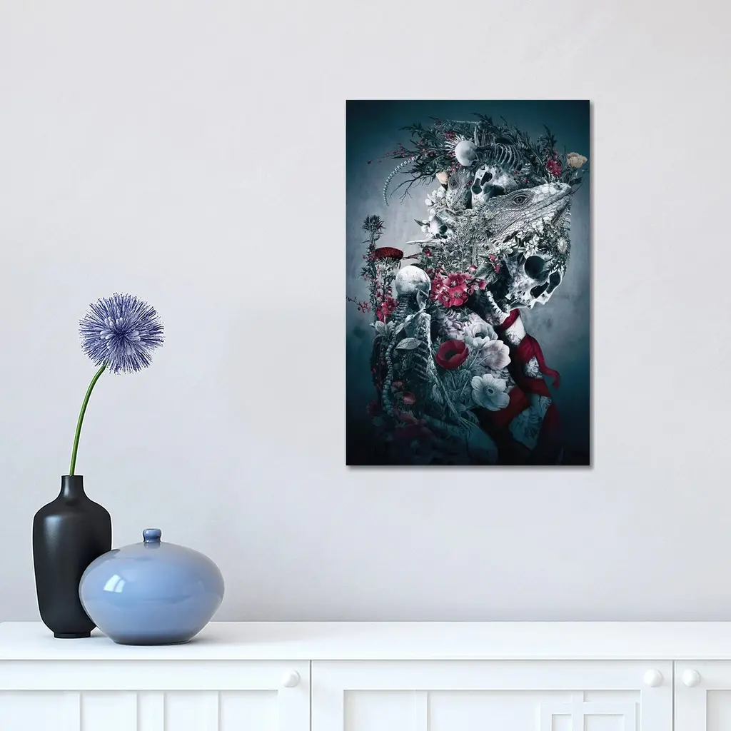 Roses And A Skeleton Floral Mosaic Artwork - 90cm X 160cm (35" X 63") / With Frame