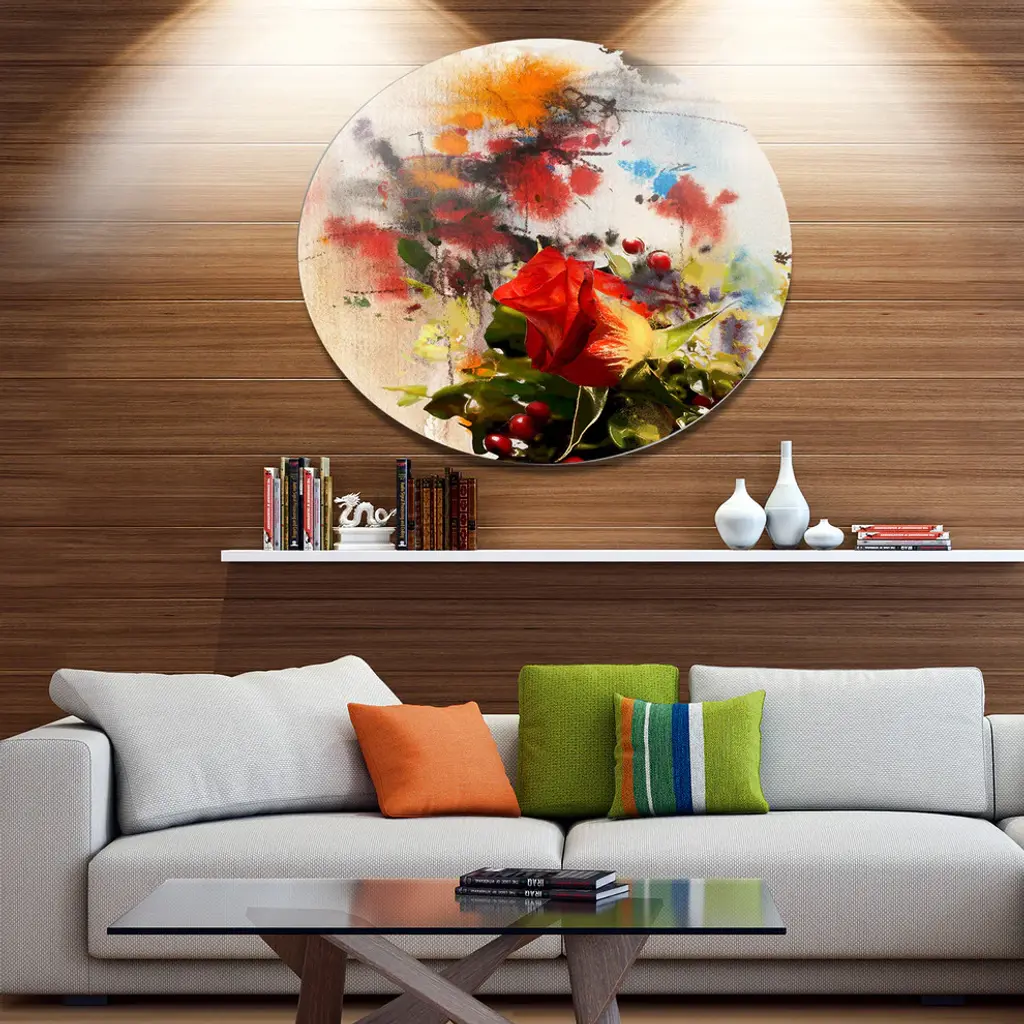 Roses And Sunny Day Watercolor, Floral Disc Metal Artwork, 23"