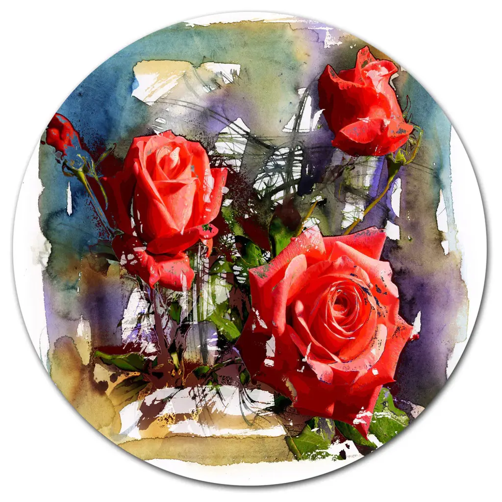 Bring Contemporary Abstraction to your home with this large Circle Metal wall art. This Roses Pastel Chalk Illustration Metal Artwork makes it the focal point of any room or office. - White Gloss Coating ensures colors are extra vibrant with light reflection.- Aluminum grade Sheet Metal with 1 inch mounting frame on the back giving the illusion that the artwork is floating on the wall..- Mounting Brackets are included along with instructions.- High Quality Digital images are created directly into a glossy aluminum panel producing a stunning and captivating print into the glossy finish of the metal.- Water, Fire and Scratch resistant HD Aluminum panels.- Looks better than any photo paper and guaranteed to last at least 20 years- Easy to clean with a microfiber cloth. Colors are far superior to regular Canvas Art. - Easy to Hang