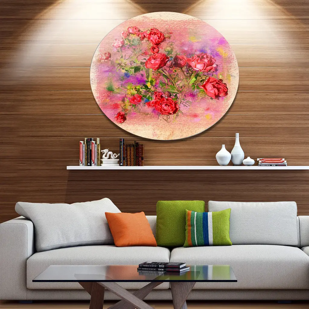 Bring Contemporary Abstraction to your home with this large Circle Metal wall art. This Roses Pastel Chalk Illustration Metal Artwork makes it the focal point of any room or office. - White Gloss Coating ensures colors are extra vibrant with light reflection.- Aluminum grade Sheet Metal with 1 inch mounting frame on the back giving the illusion that the artwork is floating on the wall..- Mounting Brackets are included along with instructions.- High Quality Digital images are created directly into a glossy aluminum panel producing a stunning and captivating print into the glossy finish of the metal.- Water, Fire and Scratch resistant HD Aluminum panels.- Looks better than any photo paper and guaranteed to last at least 20 years- Easy to clean with a microfiber cloth. Colors are far superior to regular Canvas Art. - Easy to Hang