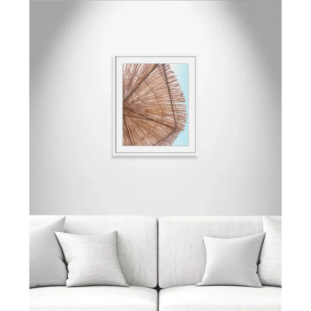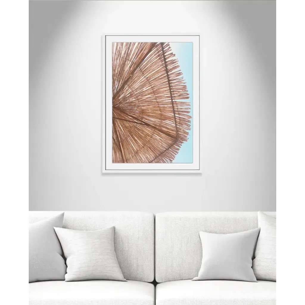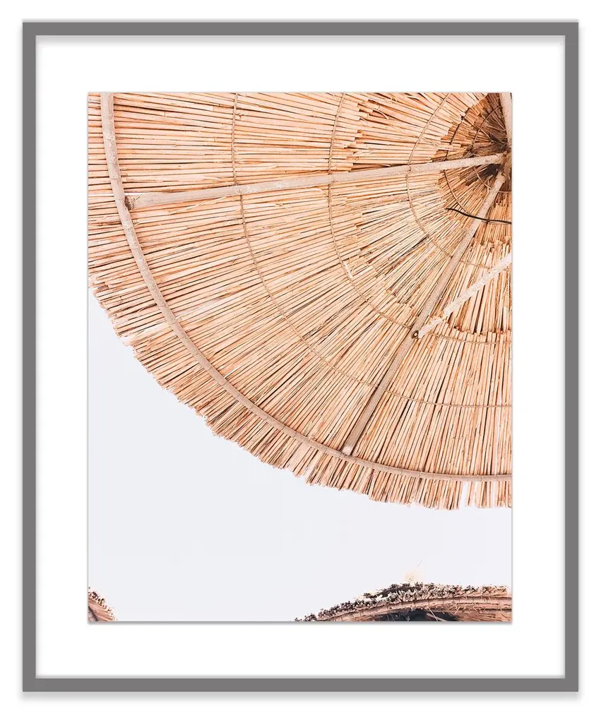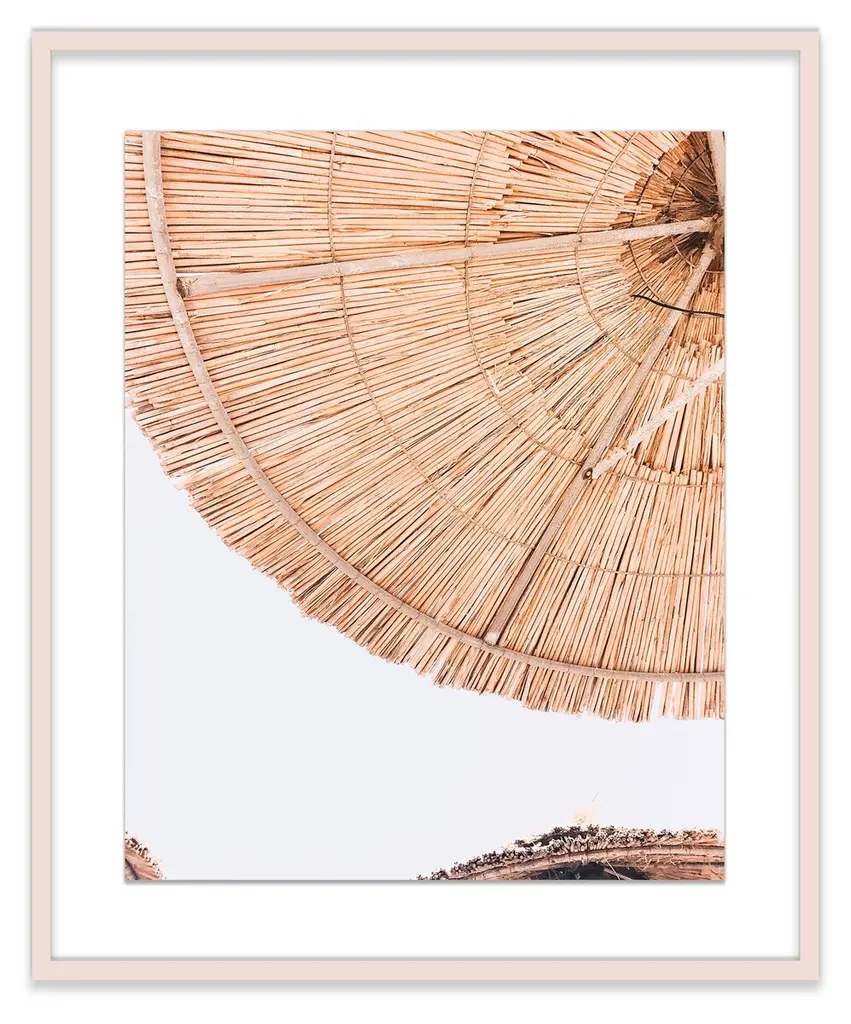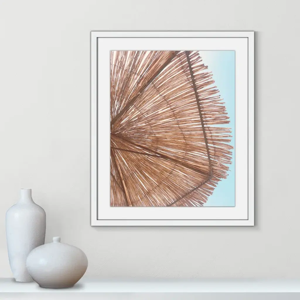 Change your perspective. This framed print is a recreation of the photograph: Rosy Straw Umbrella, and it showcases the ants-eye-view of an earthy brown umbrella against a clear blue sky. We love how its complementary color palette and easygoing subject matter evoke carefree island vibes. Plus, this artwork comes in your choice of size and frame finish to suit your space and match your decor.