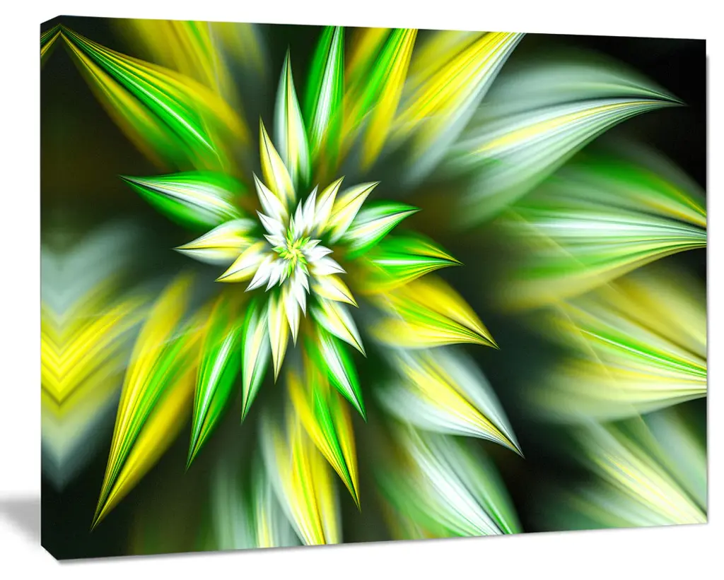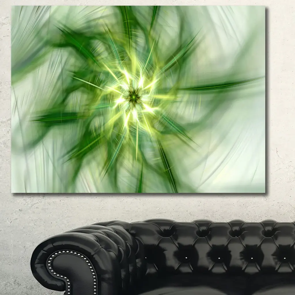 Rotating Bright Green Flower, Oversized Abstract Canvas Art Print, 60x40