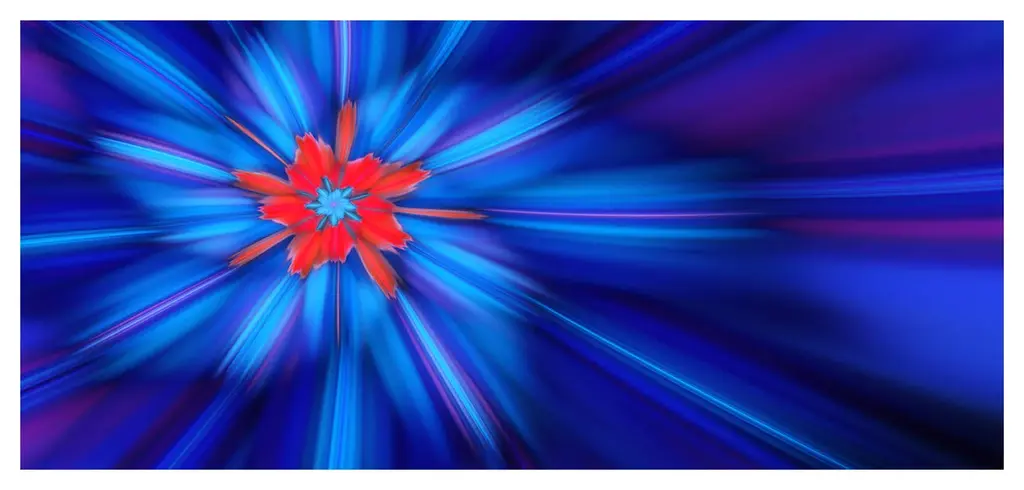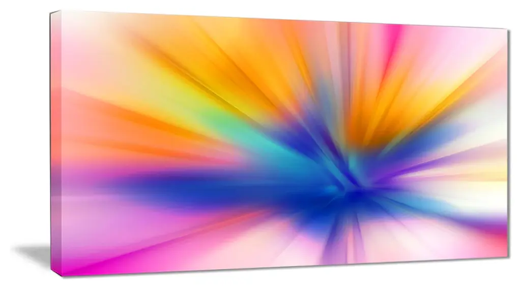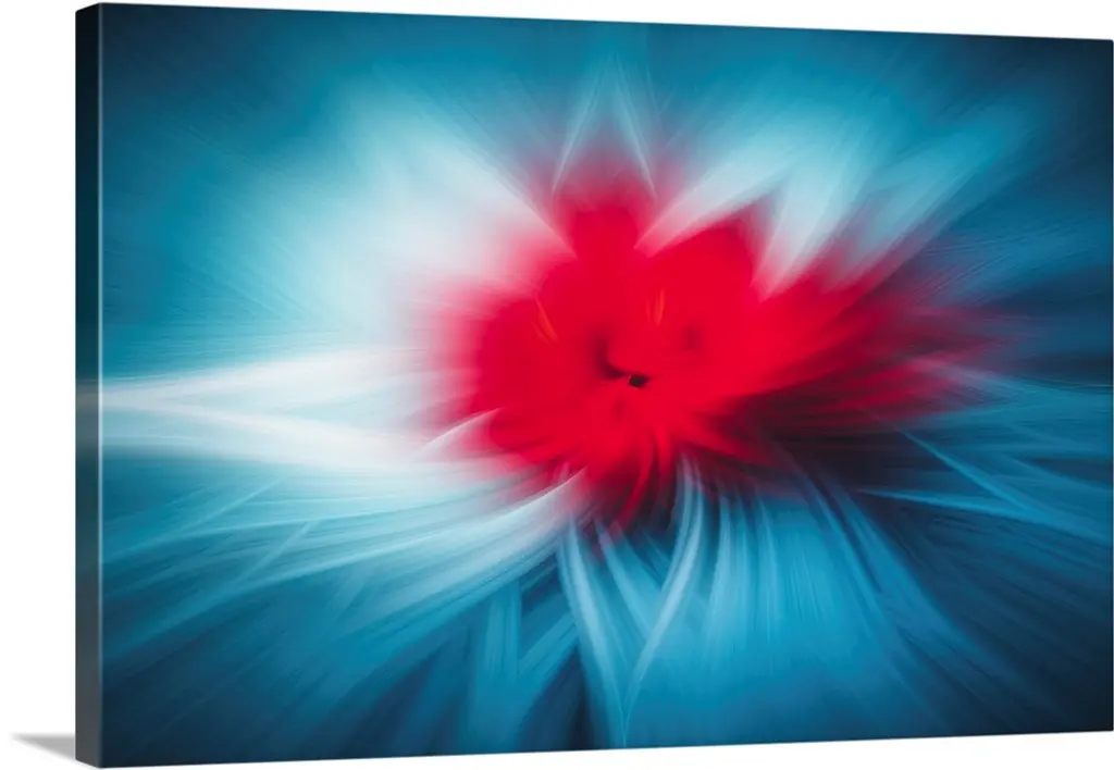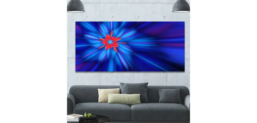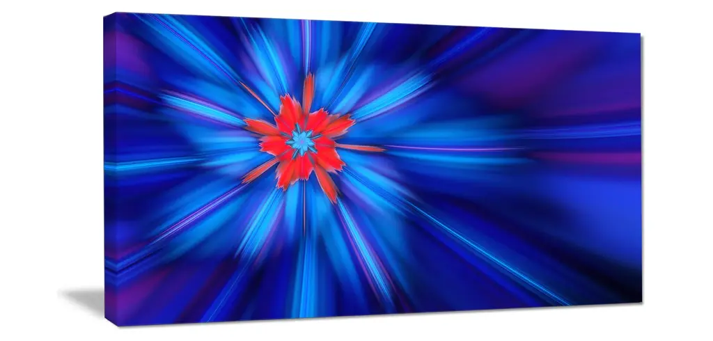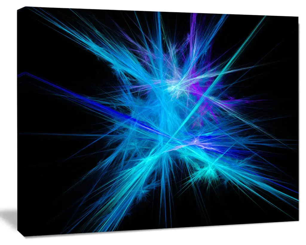 Rotating Fractal Blue Fireworks, Large Floral Canvas Art Print, 60"x28"
