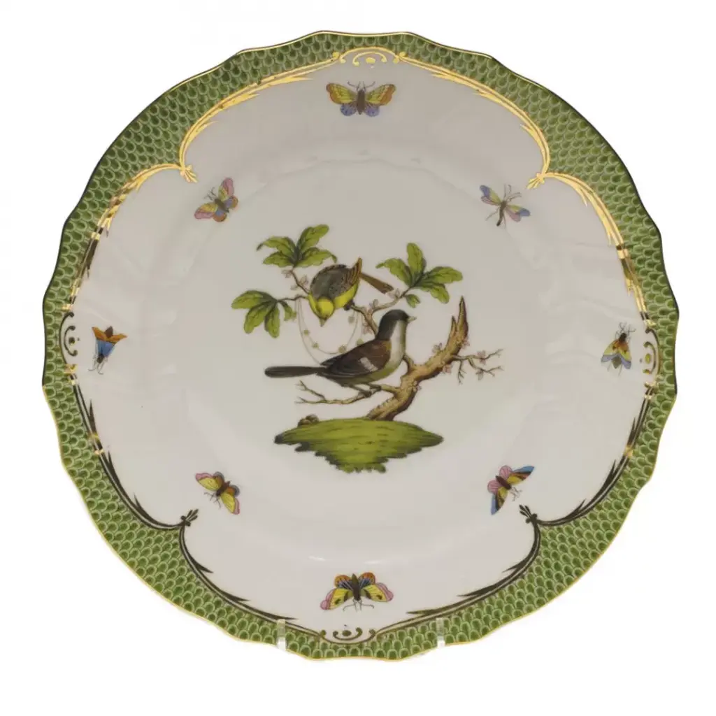 Many connoisseurs consider this pattern, first created in 1860 for the Rothschild family of Europe, to be the epitome of hand painting on porcelain. Twelve different motifs portray a 19th century tale about Baroness Rothschild, who lost her pearl necklace in the garden of her Vienna residence. Several days later it was found by her gardener, who saw birds playing with it in a tree. The Rothschild Bird Border variations feature handsomely painted borders. Hand painted in Hungary. Now the biggest porcelain manufactory in Europe, Herend was founded in 1826 to produce earthenware in the small Hungarian village for which it was named. At the time, Hungary was flooded with low-cost pottery, but in 1839, Mor Fischer became the Manufactory’s new owner and he decided to focus on producing dinnerware replacement pieces for Europe’s royal families to complement their valuable porcelain patterns from Germany and the Far East. As his client base grew, Fischer commissioned his artists to begin designing dinnerware patterns of their own. Queen Victoria’s 1851 purchase of a large set for Windsor Castle was a milestone, setting the stage for aristocrats throughout Europe to clamor for Herend in their estates. In the 1850s, Herend added meticulously-crafted figurines to its creations. Herend’s trademark fishnet pattern, which is widely recognized and prized as Herend’s signature design, started in 1858 when an artist who was intrigued with a Chinese plate’s fish scale design painted it onto a rooster figurine to imitate feathers.