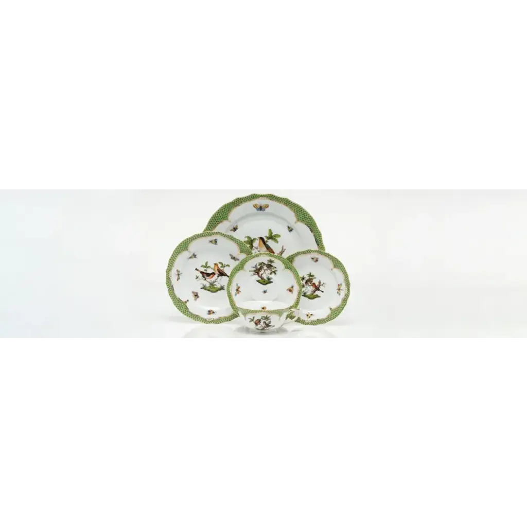 Many connoisseurs consider this pattern, first created in 1860 for the Rothschild family of Europe, to be the epitome of hand painting on porcelain. Twelve different motifs portray a 19th century tale about Baroness Rothschild, who lost her pearl necklace in the garden of her Vienna residence. Several days later it was found by her gardener, who saw birds playing with it in a tree. The Rothschild Bird Border variations feature handsomely painted borders. Hand painted in Hungary. Now the biggest porcelain manufactory in Europe, Herend was founded in 1826 to produce earthenware in the small Hungarian village for which it was named. At the time, Hungary was flooded with low-cost pottery, but in 1839, Mor Fischer became the Manufactory’s new owner and he decided to focus on producing dinnerware replacement pieces for Europe’s royal families to complement their valuable porcelain patterns from Germany and the Far East. As his client base grew, Fischer commissioned his artists to begin designing dinnerware patterns of their own. Queen Victoria’s 1851 purchase of a large set for Windsor Castle was a milestone, setting the stage for aristocrats throughout Europe to clamor for Herend in their estates. In the 1850s, Herend added meticulously-crafted figurines to its creations. Herend’s trademark fishnet pattern, which is widely recognized and prized as Herend’s signature design, started in 1858 when an artist who was intrigued with a Chinese plate’s fish scale design painted it onto a rooster figurine to imitate feathers.