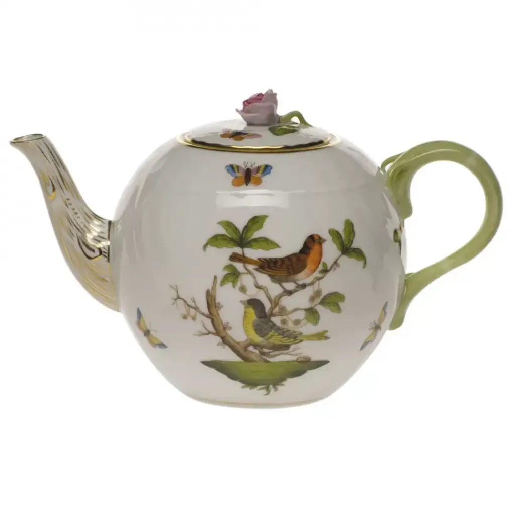 Many connoisseurs consider this pattern, first created in 1860 for the Rothschild family of Europe, to be the epitome of hand painting on porcelain. Twelve different motifs portray a 19th century tale about Baroness Rothschild, who lost her pearl necklace in the garden of her Vienna residence. Several days later it was found by her gardener, who saw birds playing with it in a tree. Hand painted in Hungary. Now the biggest porcelain manufactory in Europe, Herend was founded in 1826 to produce earthenware in the small Hungarian village for which it was named. At the time, Hungary was flooded with low-cost pottery, but in 1839, Mor Fischer became the Manufactory’s new owner and he decided to focus on producing dinnerware replacement pieces for Europe’s royal families to complement their valuable porcelain patterns from Germany and the Far East. As his client base grew, Fischer commissioned his artists to begin designing dinnerware patterns of their own. Queen Victoria’s 1851 purchase of a large set for Windsor Castle was a milestone, setting the stage for aristocrats throughout Europe to clamor for Herend in their estates. In the 1850s, Herend added meticulously-crafted figurines to its creations. Herend’s trademark fishnet pattern, which is widely recognized and prized as Herend’s signature design, started in 1858 when an artist who was intrigued with a Chinese plate’s fish scale design painted it onto a rooster figurine to imitate feathers.