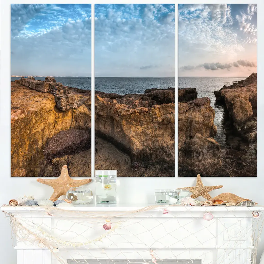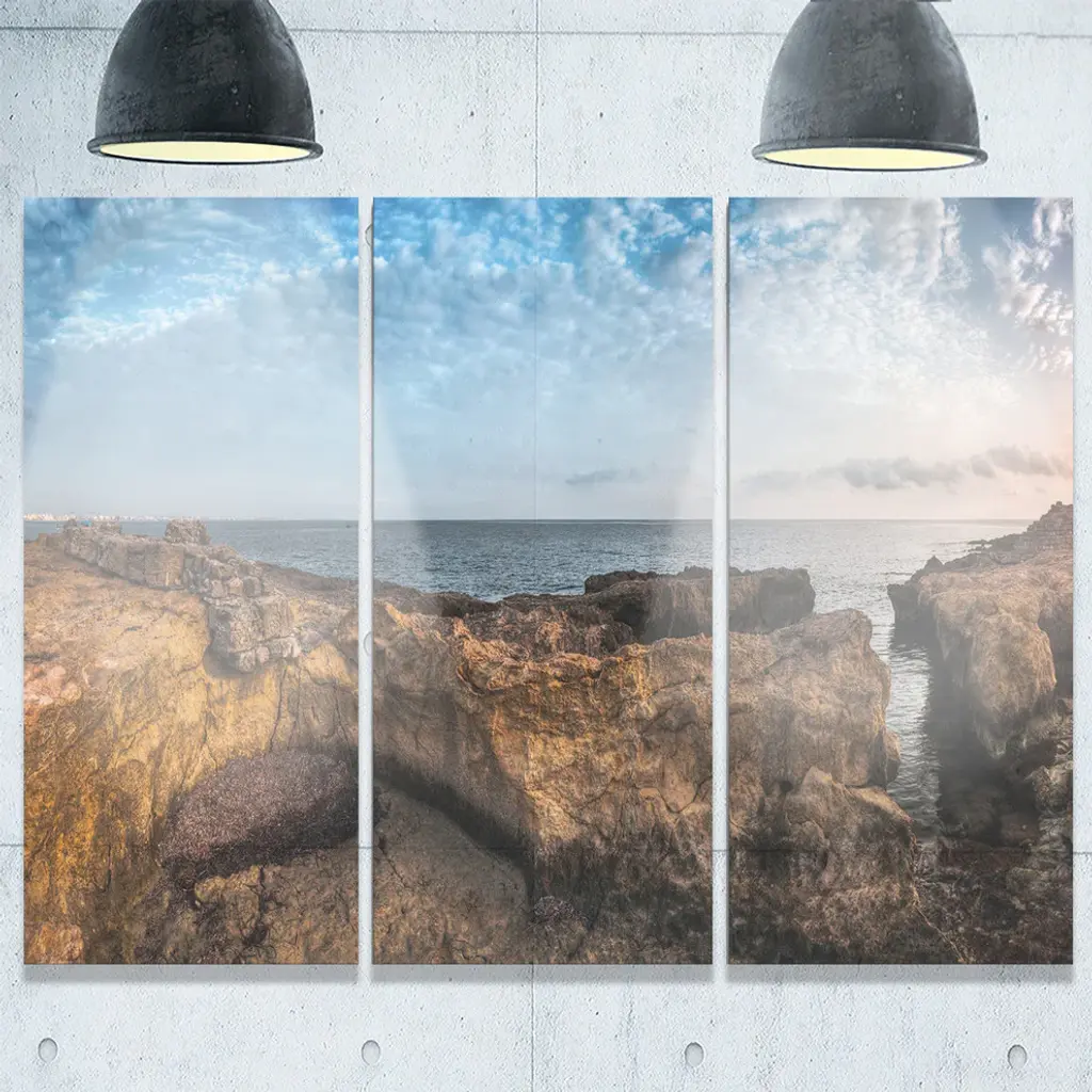 "Rough Rocky Coast Under Blue Sky" Metal Wall Art, 3 Panels, 36"x28"