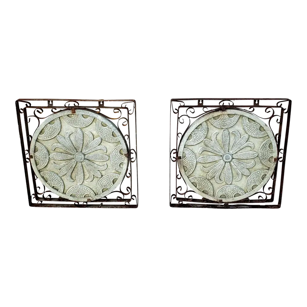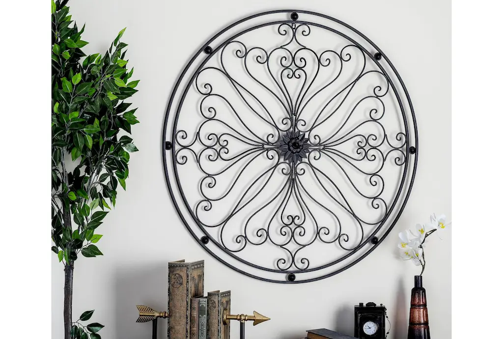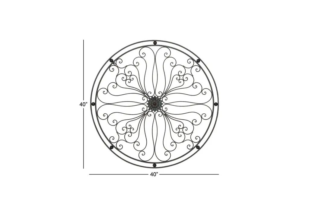 Round Dark Grey Brown Bronze Metal Medallion Wall Decor | Curved