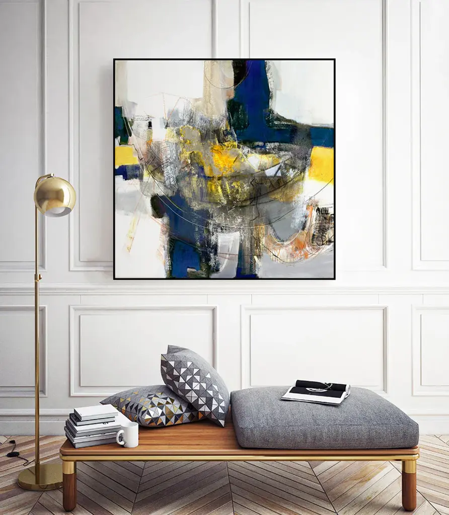 Your ready to hang artwork is printed on canvas then stretched and mounted to a 2-inch thick - hand stained black wood frame. Arrives at your door complete with an easy to use self-leveling hangking kit.