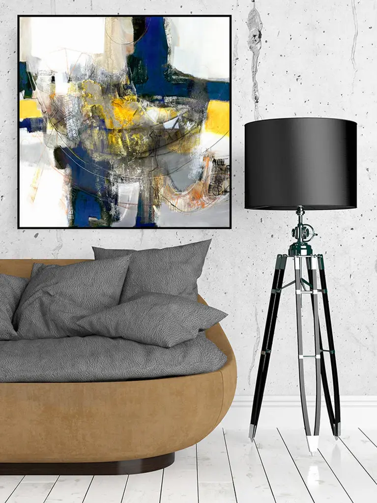 Your ready to hang artwork is printed on canvas then stretched and mounted to a 2-inch thick - hand stained black wood frame. Arrives at your door complete with an easy to use self-leveling hangking kit.