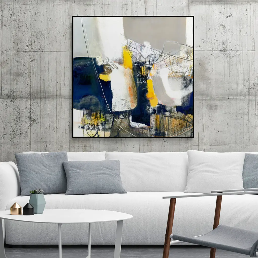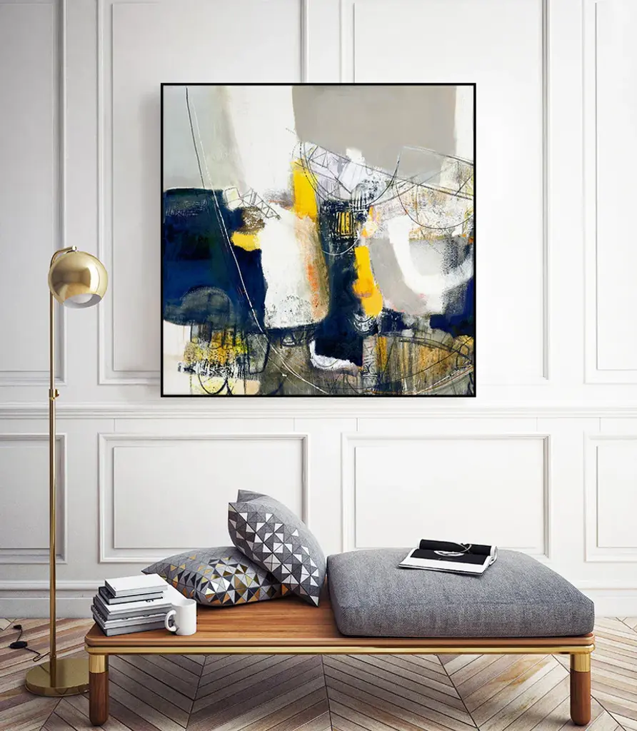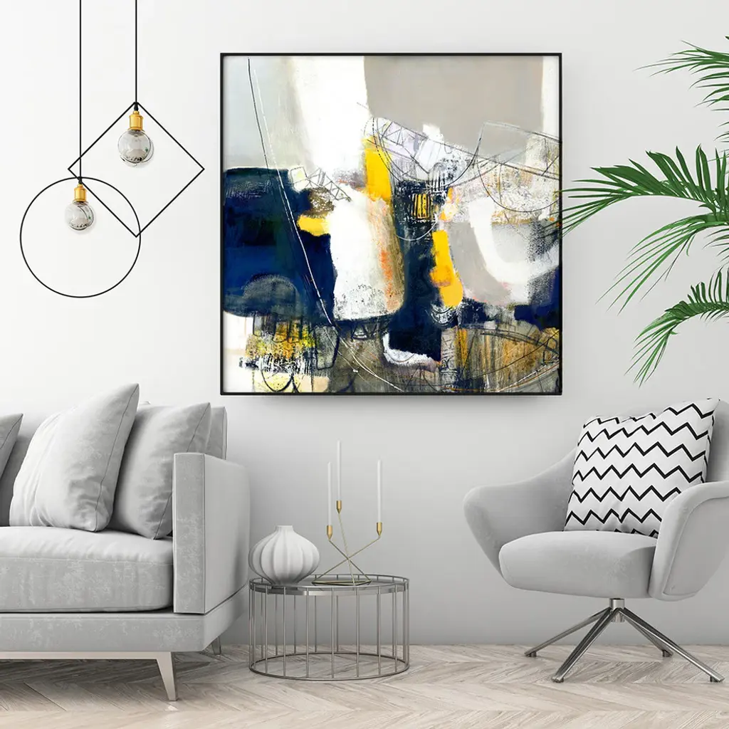 Your ready to hang artwork is printed on canvas then stretched and mounted to a 2-inch thick - hand stained black wood frame. Arrives at your door complete with an easy to use self-leveling hangking kit.