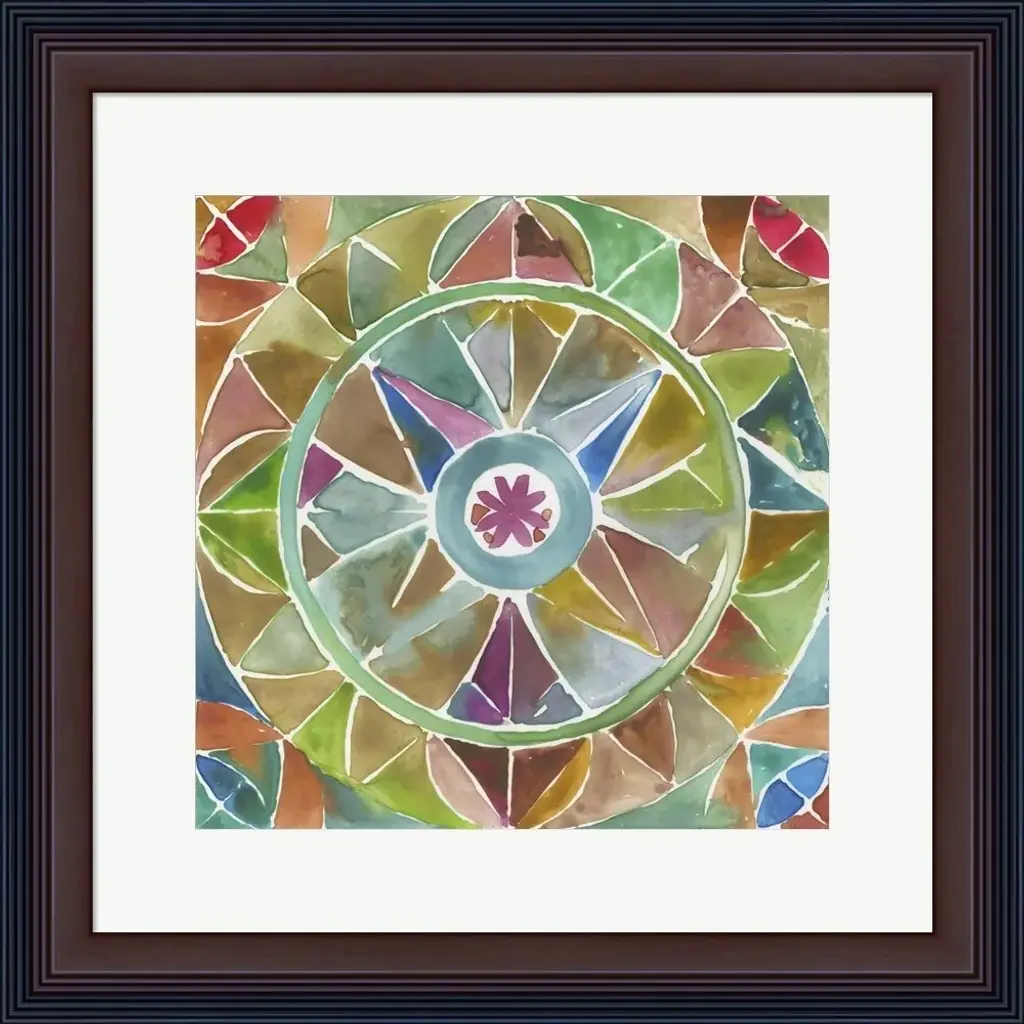 Round White Diamond Watercolor Pattern Framed Giclee Texturized Art, 12"x12"