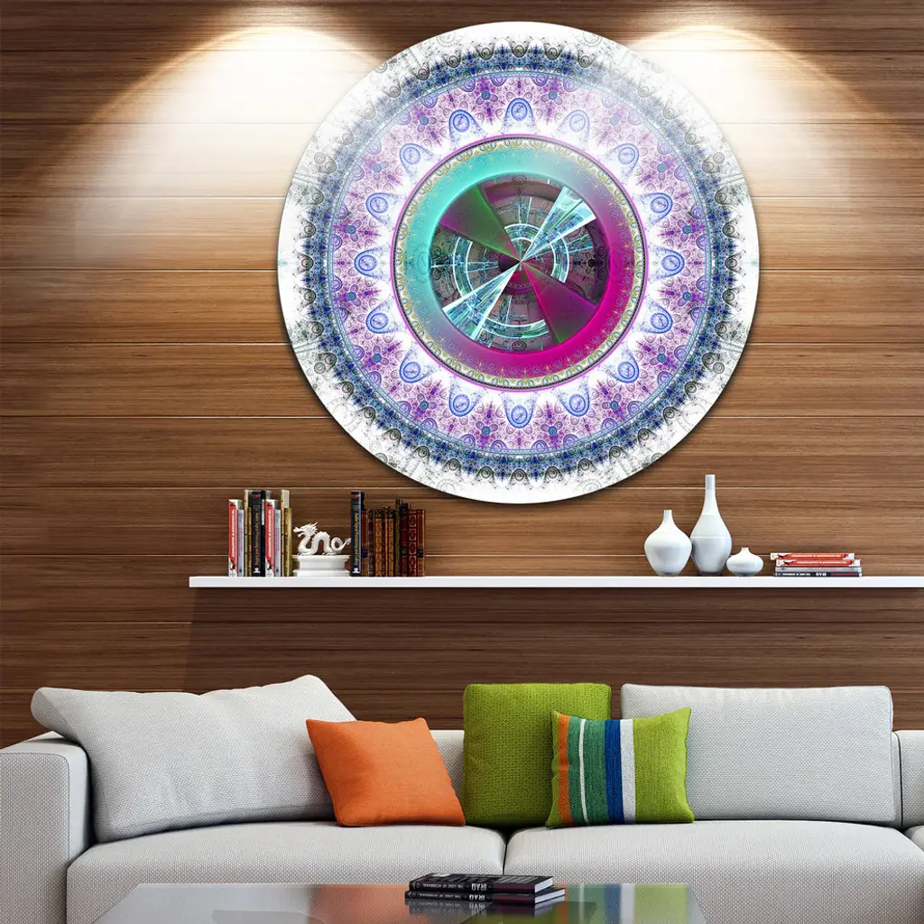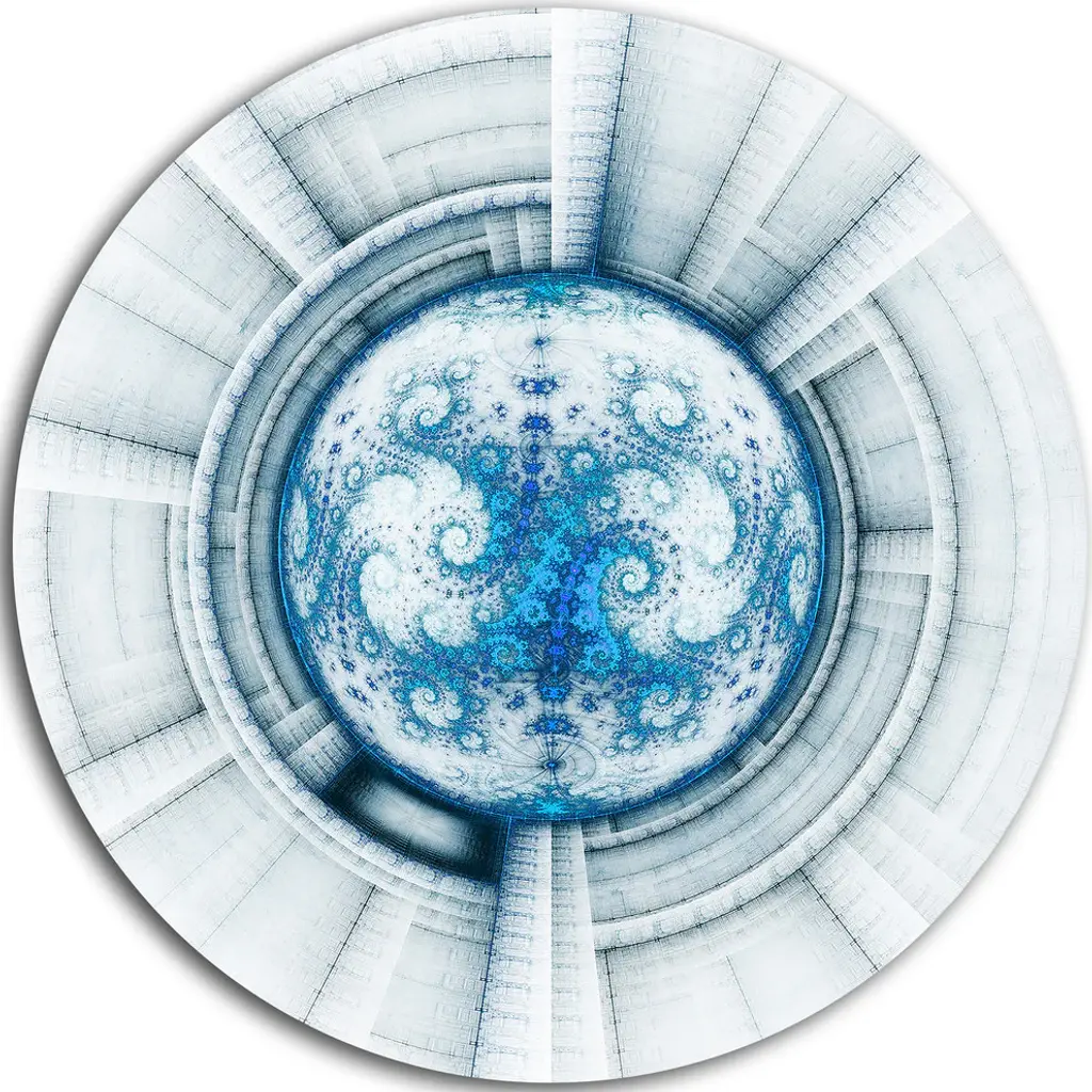 Bring Contemporary Abstraction to your home with this large Circle Metal wall art. This Large Rounded Symmetrical Flower Blue Metal Artwork makes it the focal point of any room or office. - White Gloss Coating ensures colors are extra vibrant with light reflection.- Aluminum grade Sheet Metal with 1 inch mounting frame on the back giving the illusion that the artwork is floating on the wall..- Mounting Brackets are included along with instructions.- High Quality Digital images are created directly into a glossy aluminum panel producing a stunning and captivating print into the glossy finish of the metal.- Water, Fire and Scratch resistant HD Aluminum panels.- Looks better than any photo paper and guaranteed to last at least 20 years- Easy to clean with a microfiber cloth. Colors are far superior to regular Canvas Art. - Easy to Hang