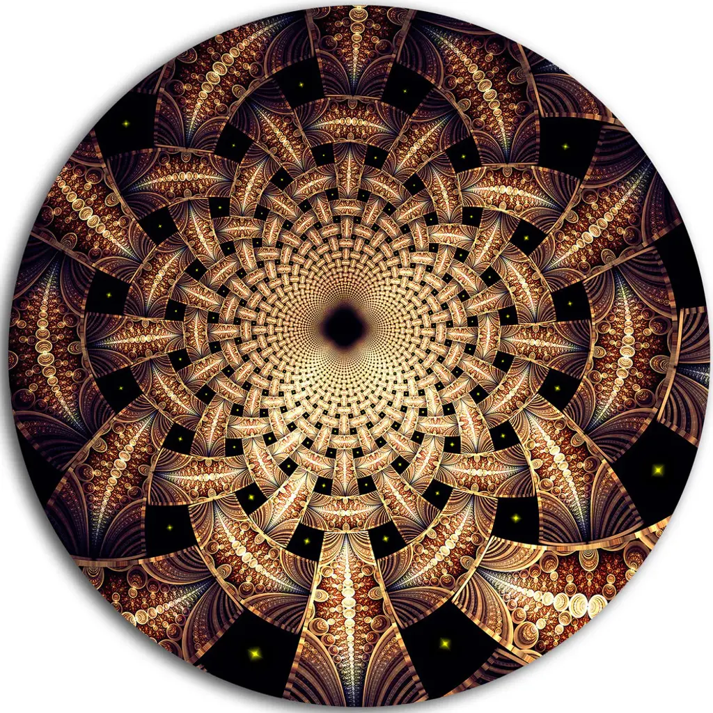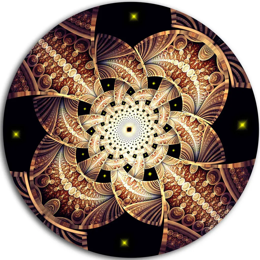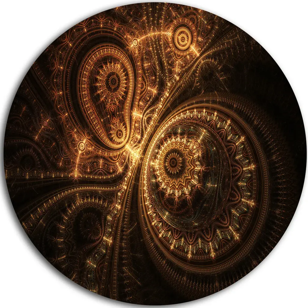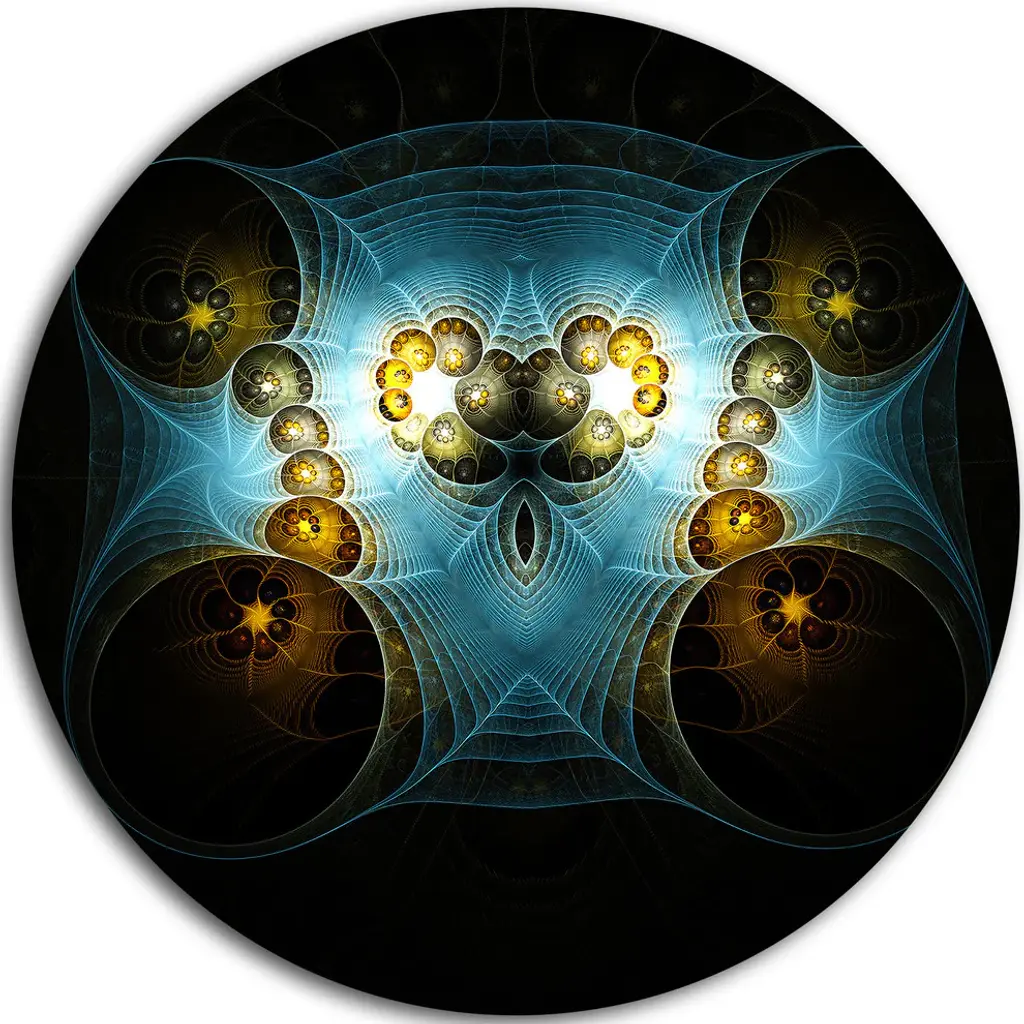 Bring Contemporary Abstraction to your home with this large Circle Metal wall art. This Rounded Symmetrical Yellow Fractal Flower Metal Artwork makes it the focal point of any room or office. - White Gloss Coating ensures colors are extra vibrant with light reflection.- Aluminum grade Sheet Metal with 1 inch mounting frame on the back giving the illusion that the artwork is floating on the wall..- Mounting Brackets are included along with instructions.- High Quality Digital images are created directly into a glossy aluminum panel producing a stunning and captivating print into the glossy finish of the metal.- Water, Fire and Scratch resistant HD Aluminum panels.- Looks better than any photo paper and guaranteed to last at least 20 years- Easy to clean with a microfiber cloth. Colors are far superior to regular Canvas Art. - Easy to Hang
