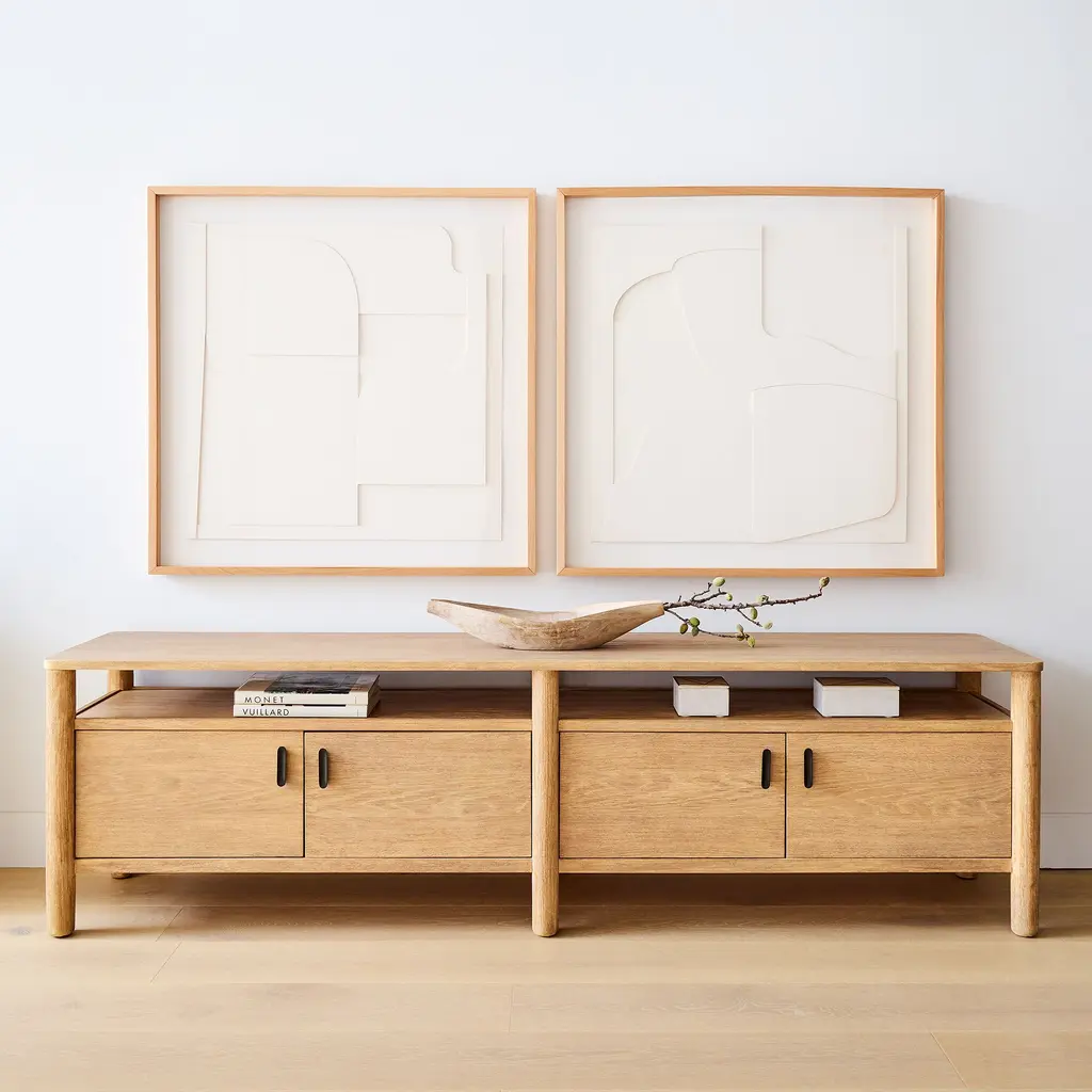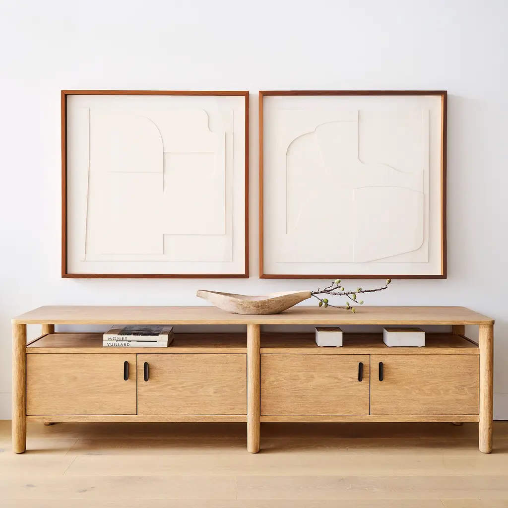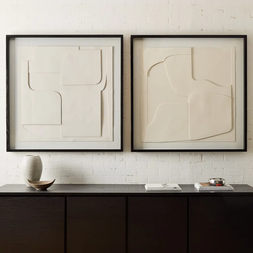 Natural papier-mache adds unique, artisan style. Creates a cohesive look when used as a diptych. Quick and easy to hang.