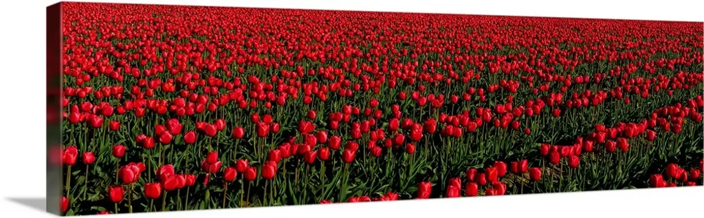 Bring Contemporary Abstraction to your home with this large 70W X 28H Metal wall art. This Rows of Red Tulip Flowers Metal Artwork makes it the focal point of any room or office. - White Gloss Coating ensures colors are extra vibrant with light reflection.- Aluminum grade Sheet Metal with 1 inch mounting frame on the back giving the illusion that the artwork is floating on the wall..- Mounting Brackets are included along with instructions.- High Quality Digital images are created directly into a glossy aluminum panel producing a stunning and captivating print into the glossy finish of the metal.- Water, Fire and Scratch resistant HD Aluminum panels.- Looks better than any photo paper and guaranteed to last at least 20 years- Easy to clean with a microfiber cloth. Colors are far superior to regular Canvas Art. - Easy to Hang