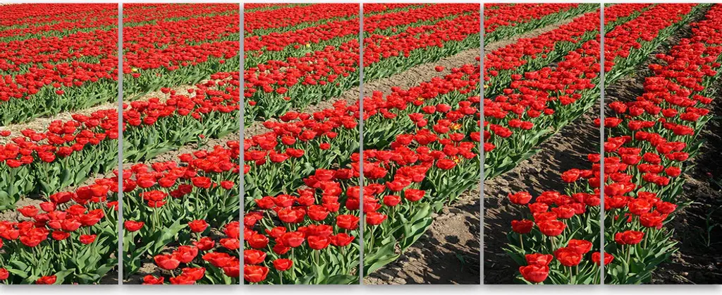 Rows Of Red Tulip Flowers, Metal Art, 83x32, 7 Panels