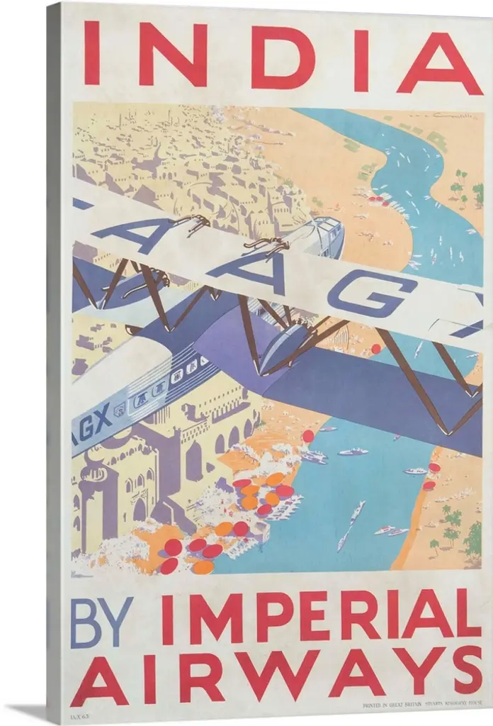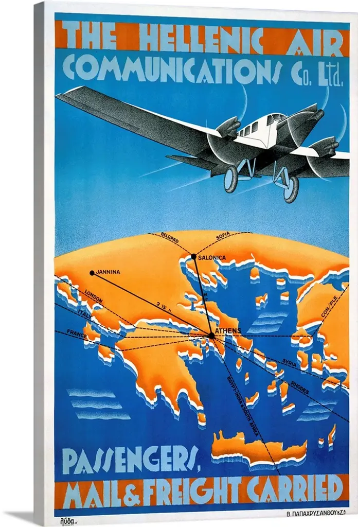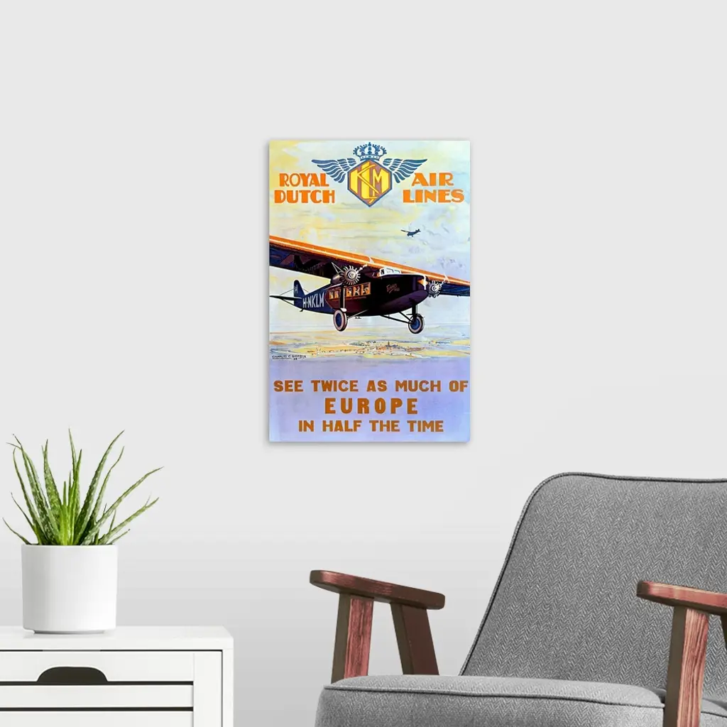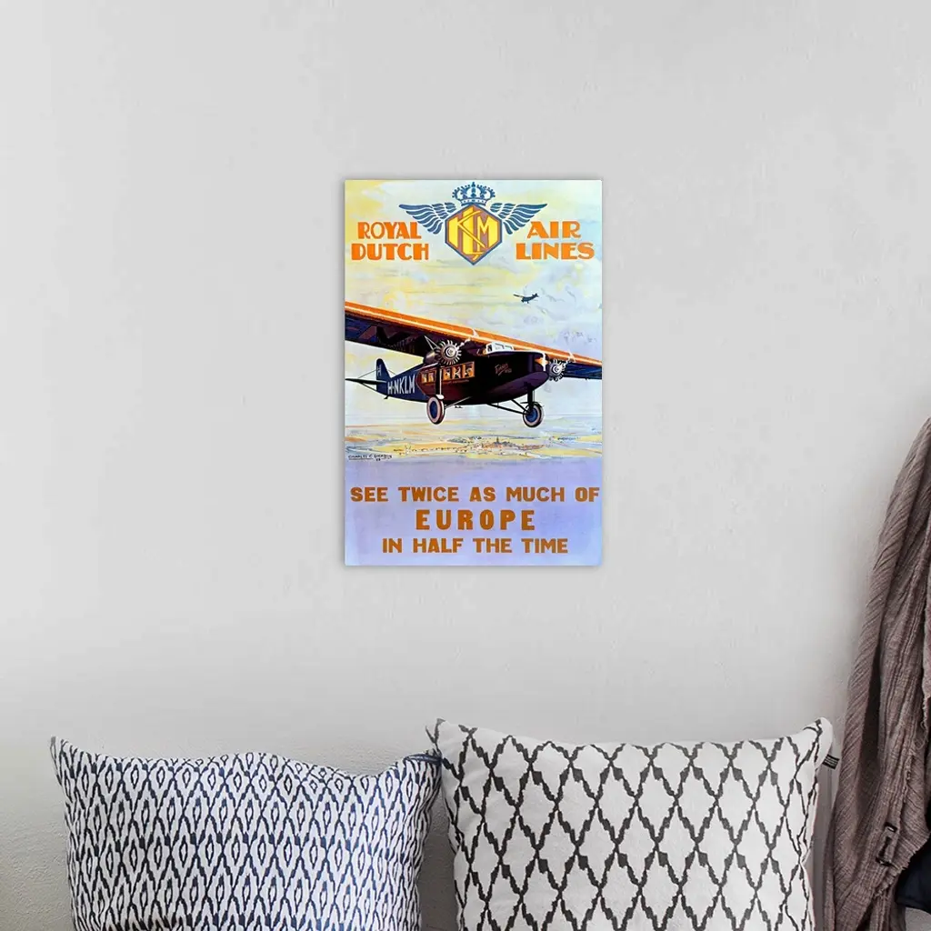 Canvas wall art of an old advertisement for an airline company in Europe.