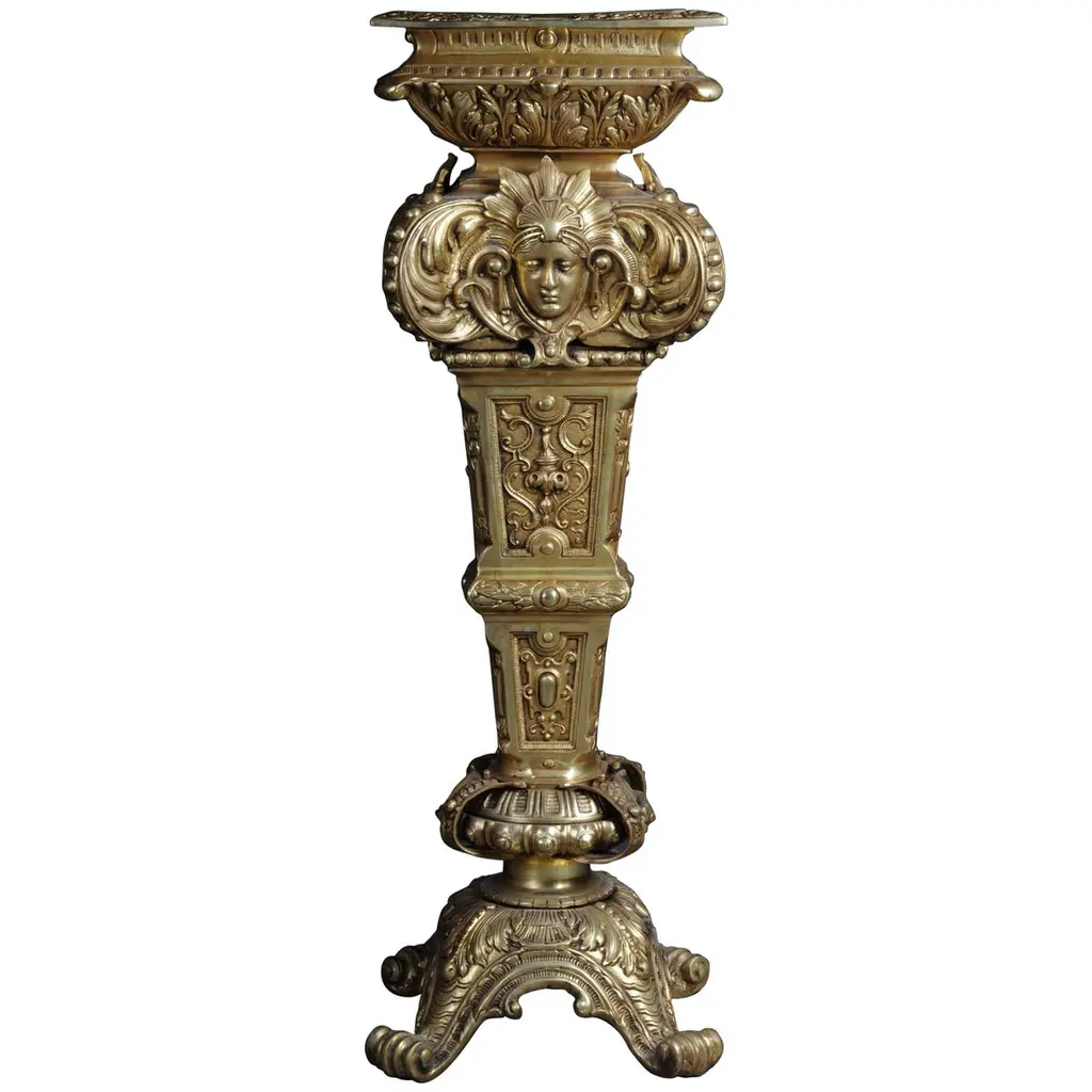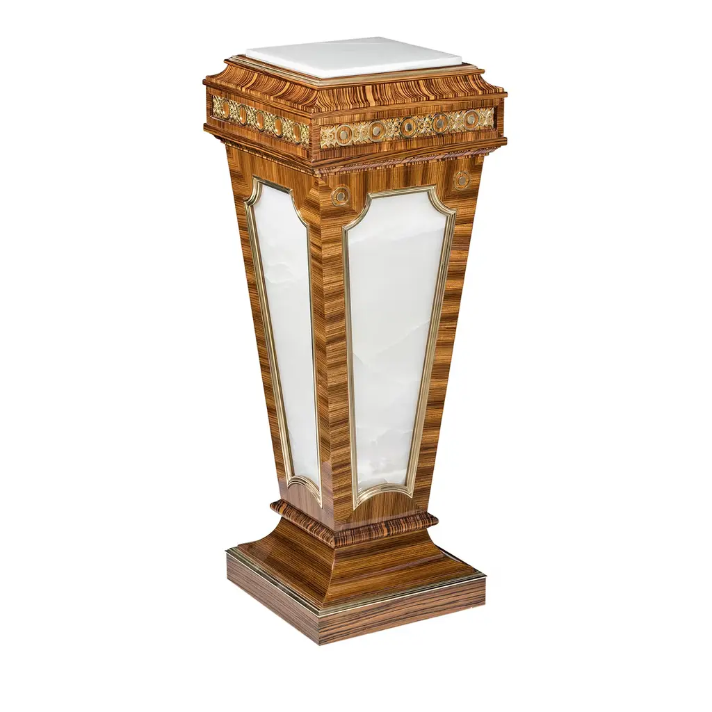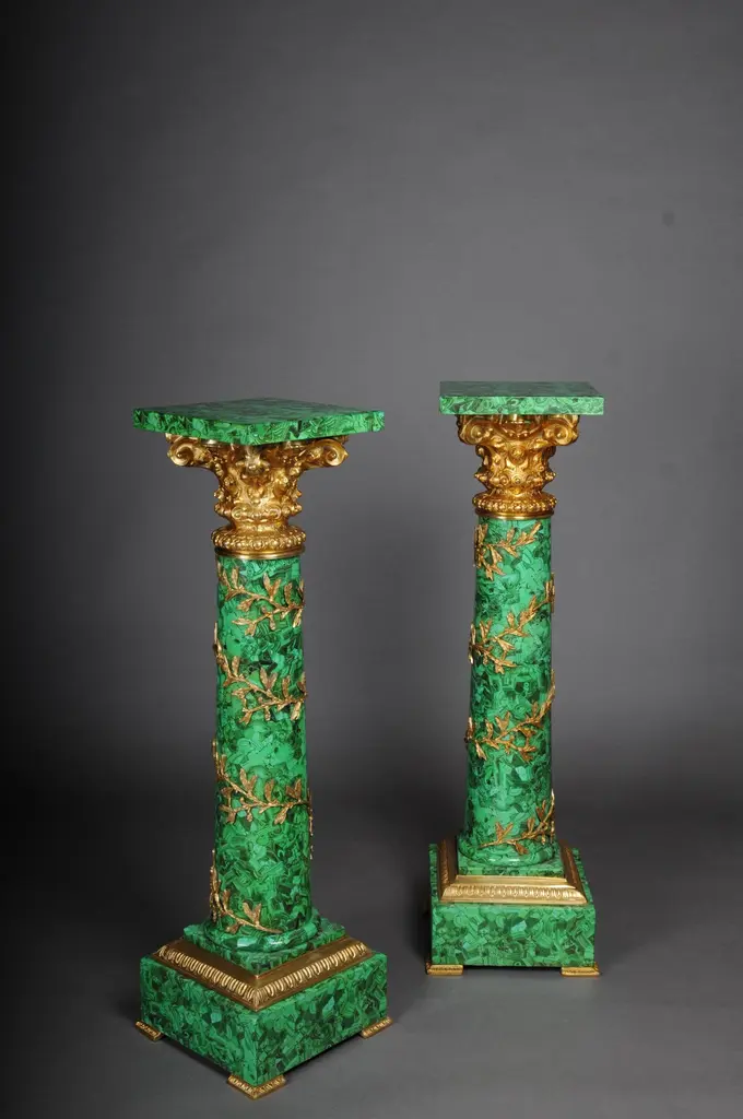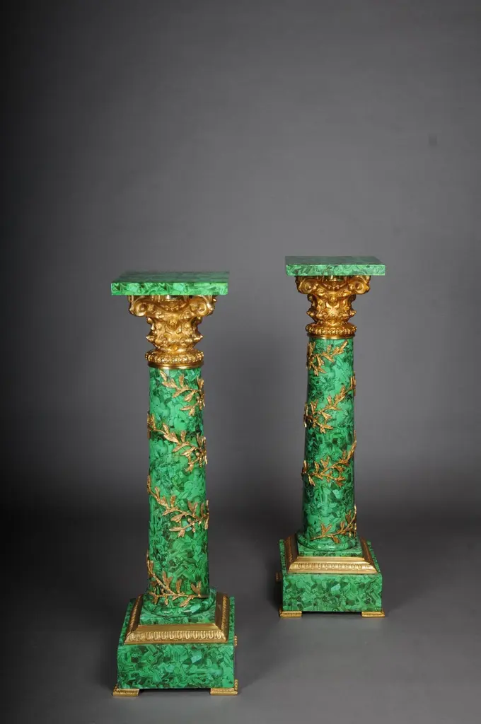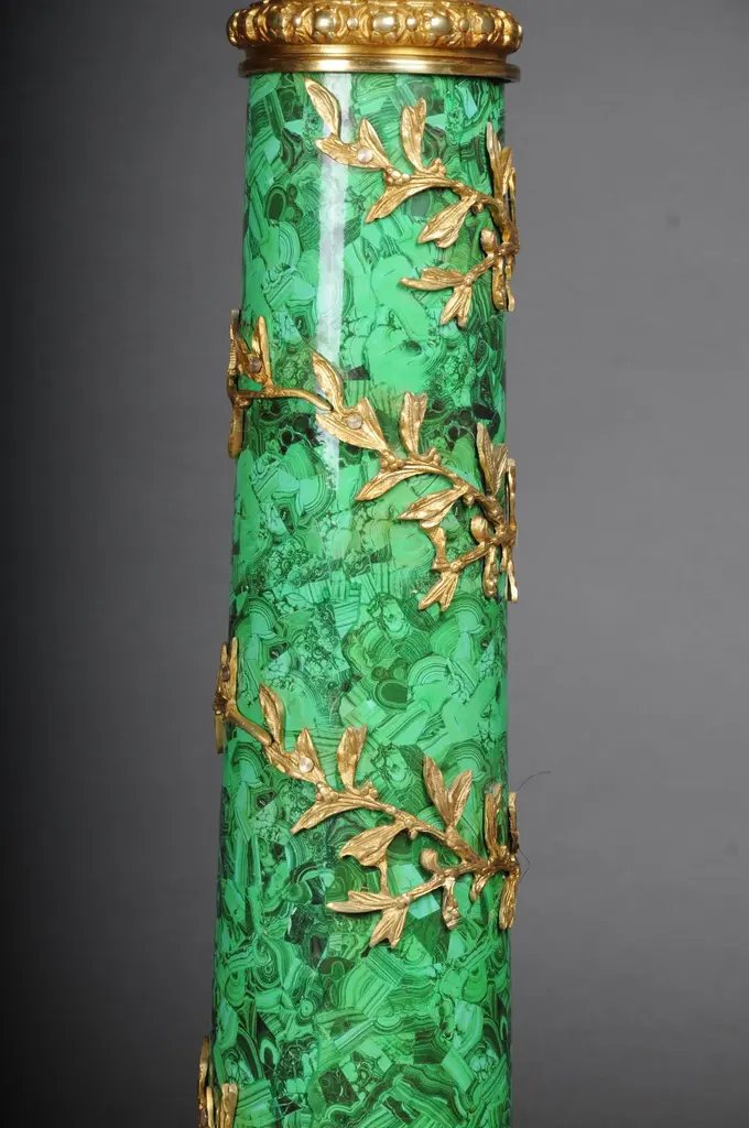 Royal Empire column with malachite and gilt bronzeImpressive and regal wooden column with bronze mounts in Empire style. Solid wood coated with malachite painting technique. Such a column is guaranteed to be a real eye-catcher and something very special.Malachite marbling may vary slightly.