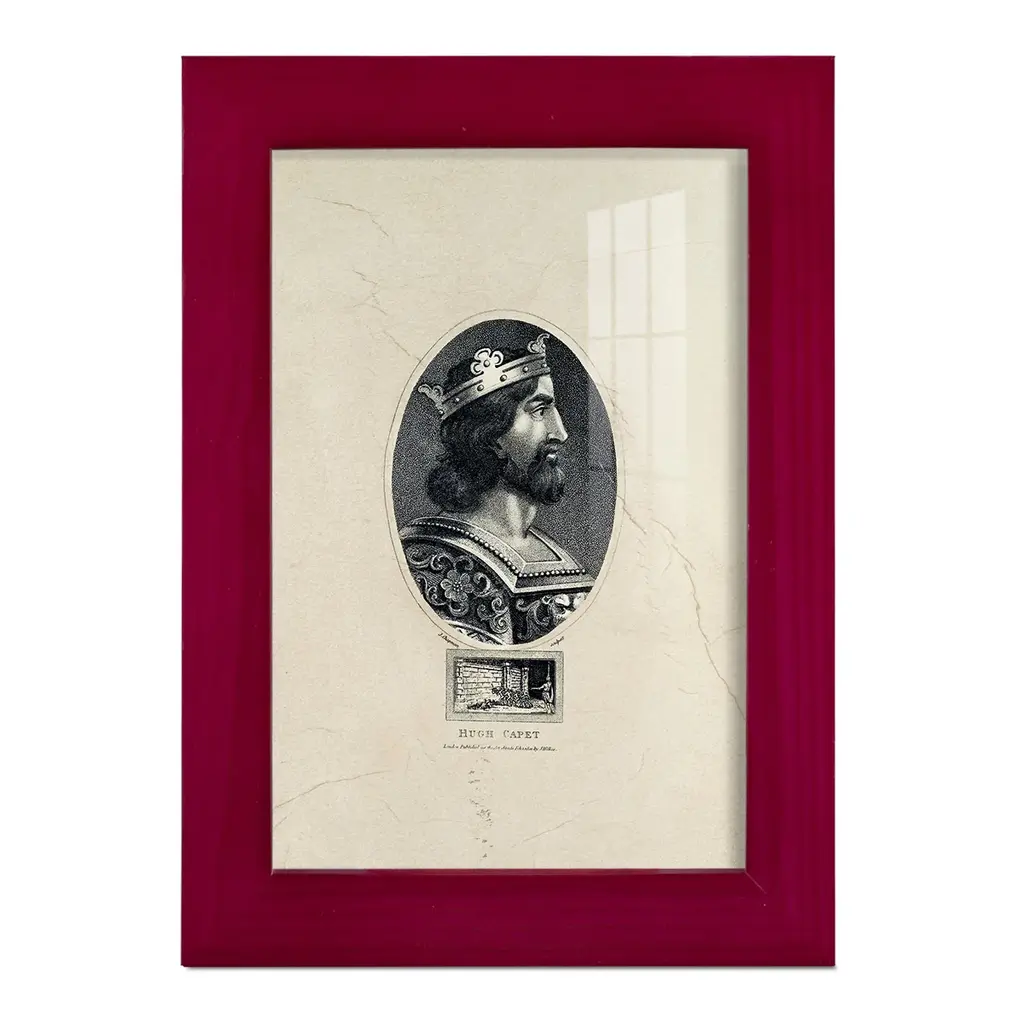Royal Portraits II -EZ SWITCH Framed Print w/glass-Cherry Red A delightful, framed print. Featuring a solid wood frame with real wood glass. This premium print is giclee quality. In addition, every frame features a removable back and table top stand. This allows you to change your art in the future or to just stand the art on a table for a new look. We are sure you'll enjoy our new series of EZ SWITCH Framed Art. Solid Wood Frame Real Glass Removable / Replaceable Art Built in Tabletop Stand Sizes range from 4x6 up to 12x15 - buy just one or pair them up as sets as you see fit.