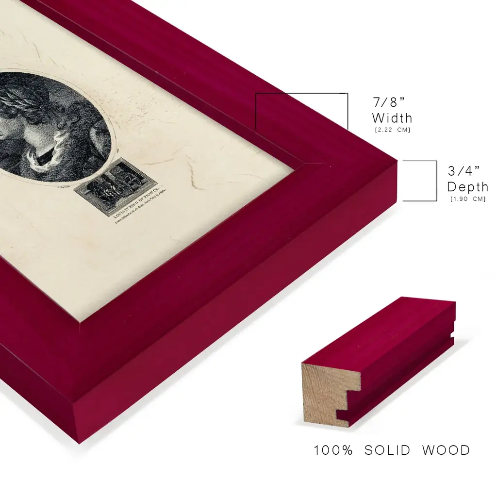 Royal Portraits IX -EZ SWITCH Framed Print w/glass-Cherry Red A delightful, framed print. Featuring a solid wood frame with real wood glass. This premium print is giclee quality. In addition, every frame features a removable back and table top stand. This allows you to change your art in the future or to just stand the art on a table for a new look. We are sure you'll enjoy our new series of EZ SWITCH Framed Art. Solid Wood Frame Real Glass Removable / Replaceable Art Built in Tabletop Stand Sizes range from 4x6 up to 12x15 - buy just one or pair them up as sets as you see fit.