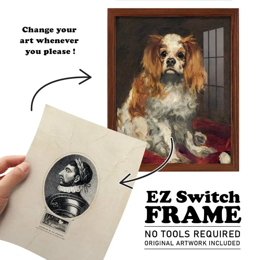Royal Portraits VII -EZ SWITCH Framed Print w/glass-Cherry Red A delightful, framed print. Featuring a solid wood frame with real wood glass. This premium print is giclee quality. In addition, every frame features a removable back and table top stand. This allows you to change your art in the future or to just stand the art on a table for a new look. We are sure you'll enjoy our new series of EZ SWITCH Framed Art. Solid Wood Frame Real Glass Removable / Replaceable Art Built in Tabletop Stand Sizes range from 4x6 up to 12x15 - buy just one or pair them up as sets as you see fit.