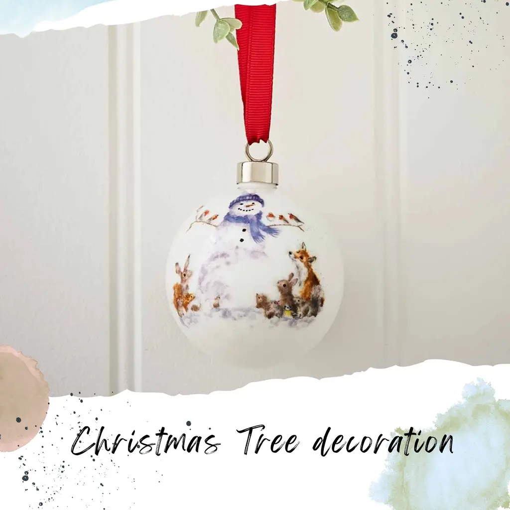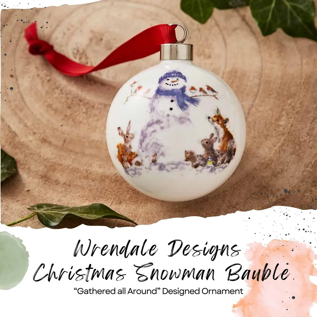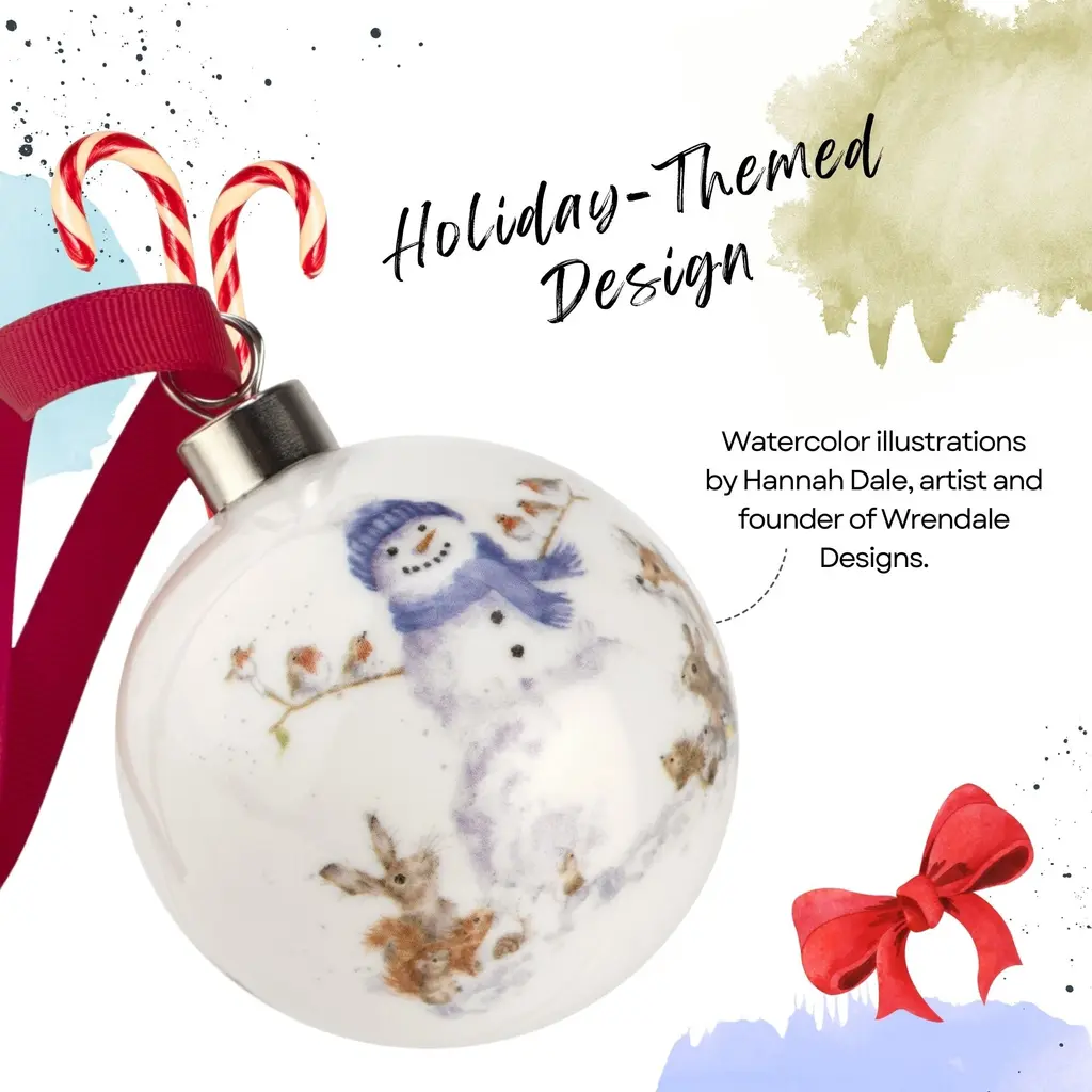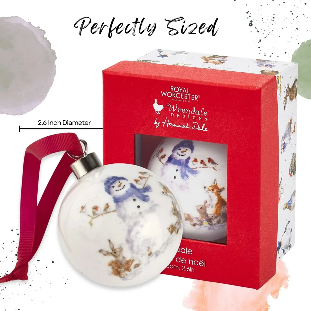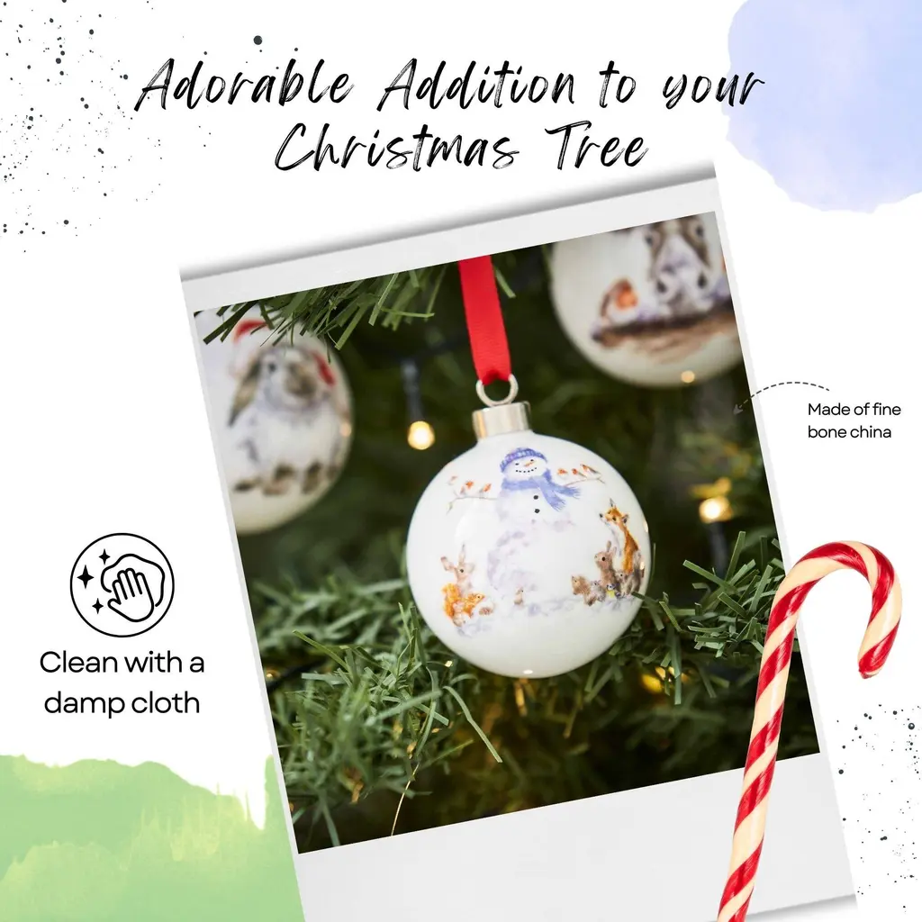 Royal Worcester Wrendale Designs Christmas Bauble - Gathered Around (Snowman/bunnies)