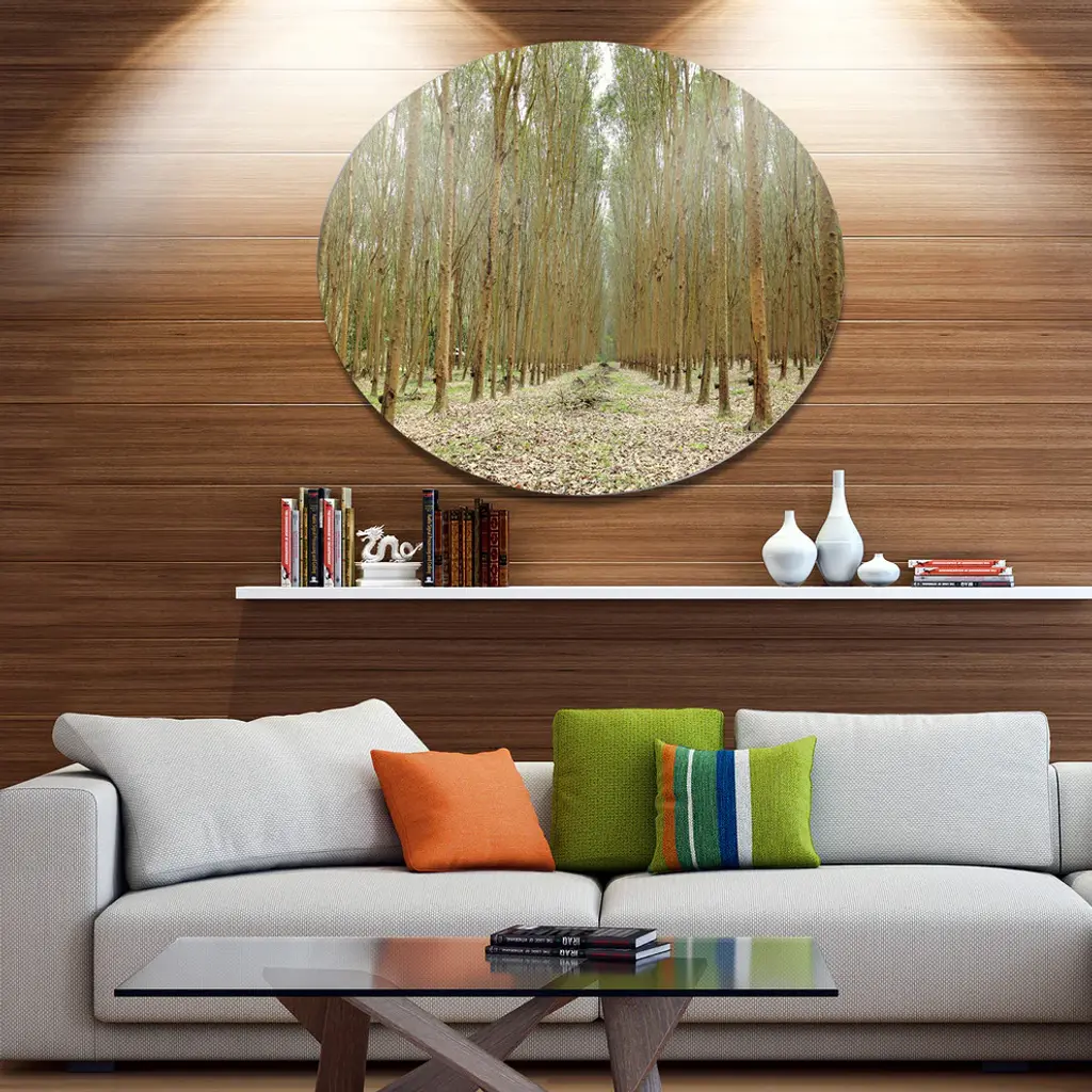 Rubber Trees Row In Thailand, Modern Forest Round Wall Art, 36"