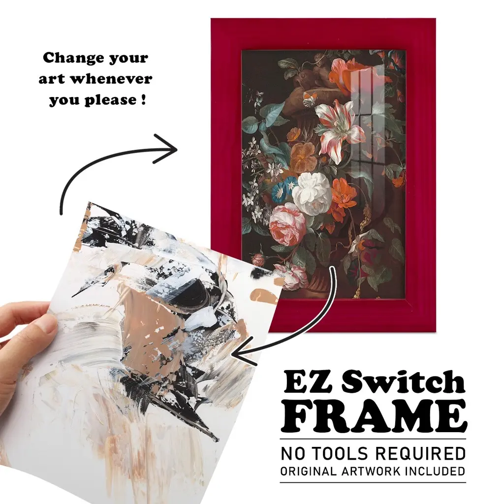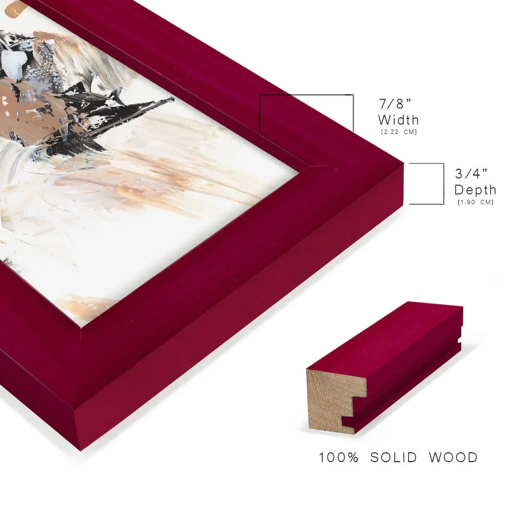 Ruckus II -EZ SWITCH Framed Print w/glass-Cherry Red A delightful, framed print. Featuring a solid wood frame with real wood glass. This premium print is giclee quality. In addition, every frame features a removable back and table top stand. This allows you to change your art in the future or to just stand the art on a table for a new look. We are sure you'll enjoy our new series of EZ SWITCH Framed Art. Solid Wood Frame Real Glass Removable / Replaceable Art Built in Tabletop Stand Sizes range from 4x6 up to 12x15 - buy just one or pair them up as sets as you see fit.
