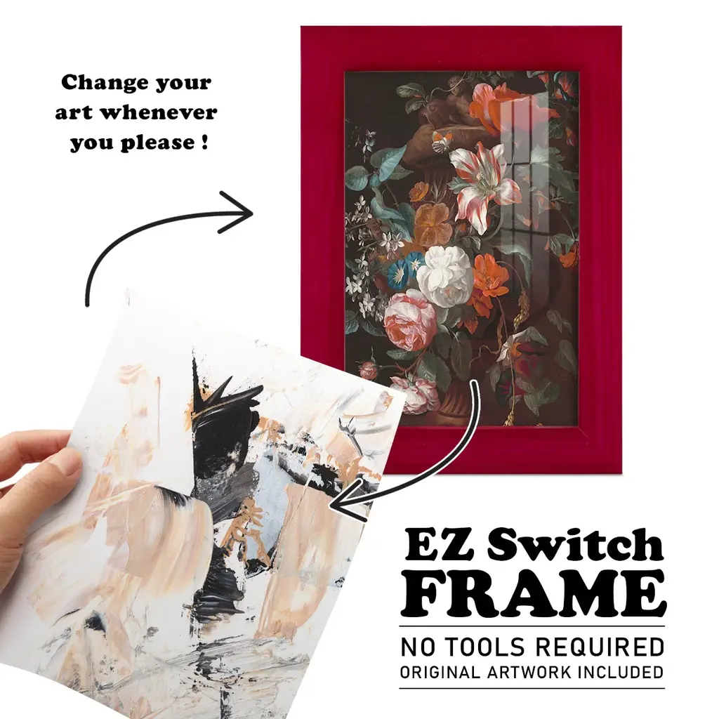 Ruckus V -EZ SWITCH Framed Print w/glass-Cherry Red A delightful, framed print. Featuring a solid wood frame with real wood glass. This premium print is giclee quality. In addition, every frame features a removable back and table top stand. This allows you to change your art in the future or to just stand the art on a table for a new look. We are sure you'll enjoy our new series of EZ SWITCH Framed Art. Solid Wood Frame Real Glass Removable / Replaceable Art Built in Tabletop Stand Sizes range from 4x6 up to 12x15 - buy just one or pair them up as sets as you see fit.