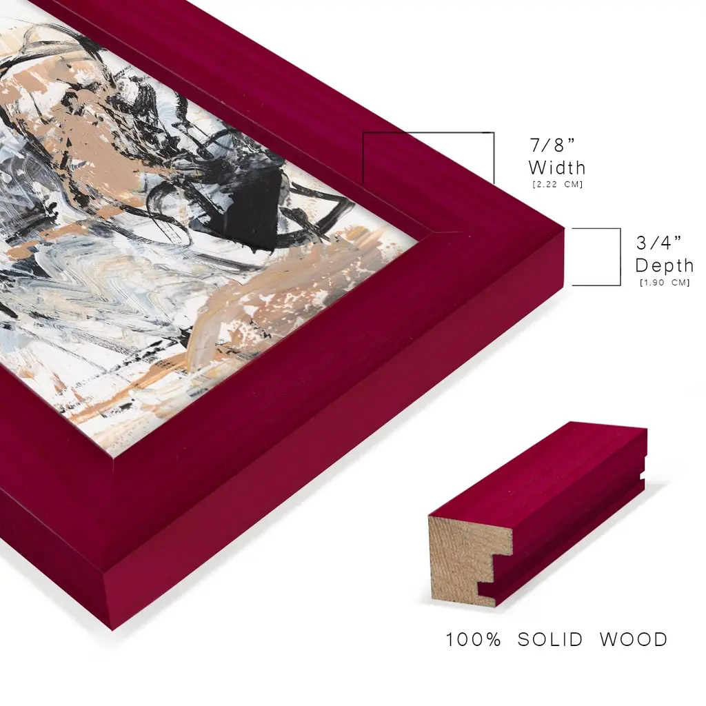 Ruckus VI -EZ SWITCH Framed Print w/glass-Cherry Red A delightful, framed print. Featuring a solid wood frame with real wood glass. This premium print is giclee quality. In addition, every frame features a removable back and table top stand. This allows you to change your art in the future or to just stand the art on a table for a new look. We are sure you'll enjoy our new series of EZ SWITCH Framed Art. Solid Wood Frame Real Glass Removable / Replaceable Art Built in Tabletop Stand Sizes range from 4x6 up to 12x15 - buy just one or pair them up as sets as you see fit.