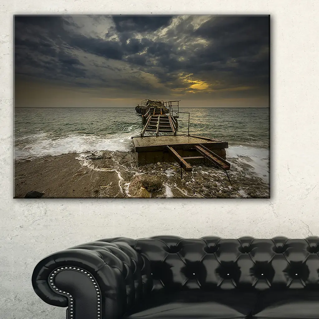 The Ruined Wooden Pier for Boats at Sunset canvas art print is sure to make an impression on anyone who sees it. This artwork is gallery wrapped around a 1-inch solid wood frame and arrives carefully packaged and entirely ready to hang on the wall. Design Art only uses the highest resolution and pigments to ensure a crisp colorful print that is never faded or pixelated. This artwork is sure to be a conversation starter in any home or office.